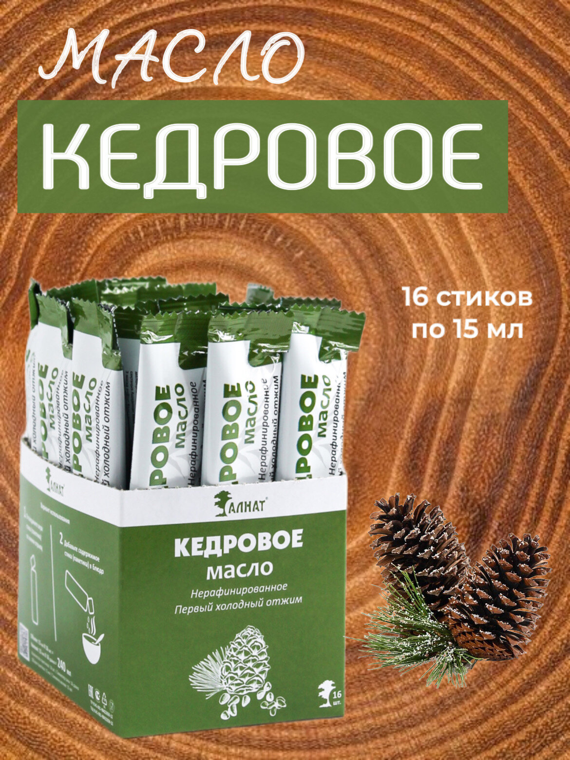 Купить Кедровое масло холодного отжима порционное, из ядра ореха кедрового, Алнат, 240 мл (15 мл*16 шт)