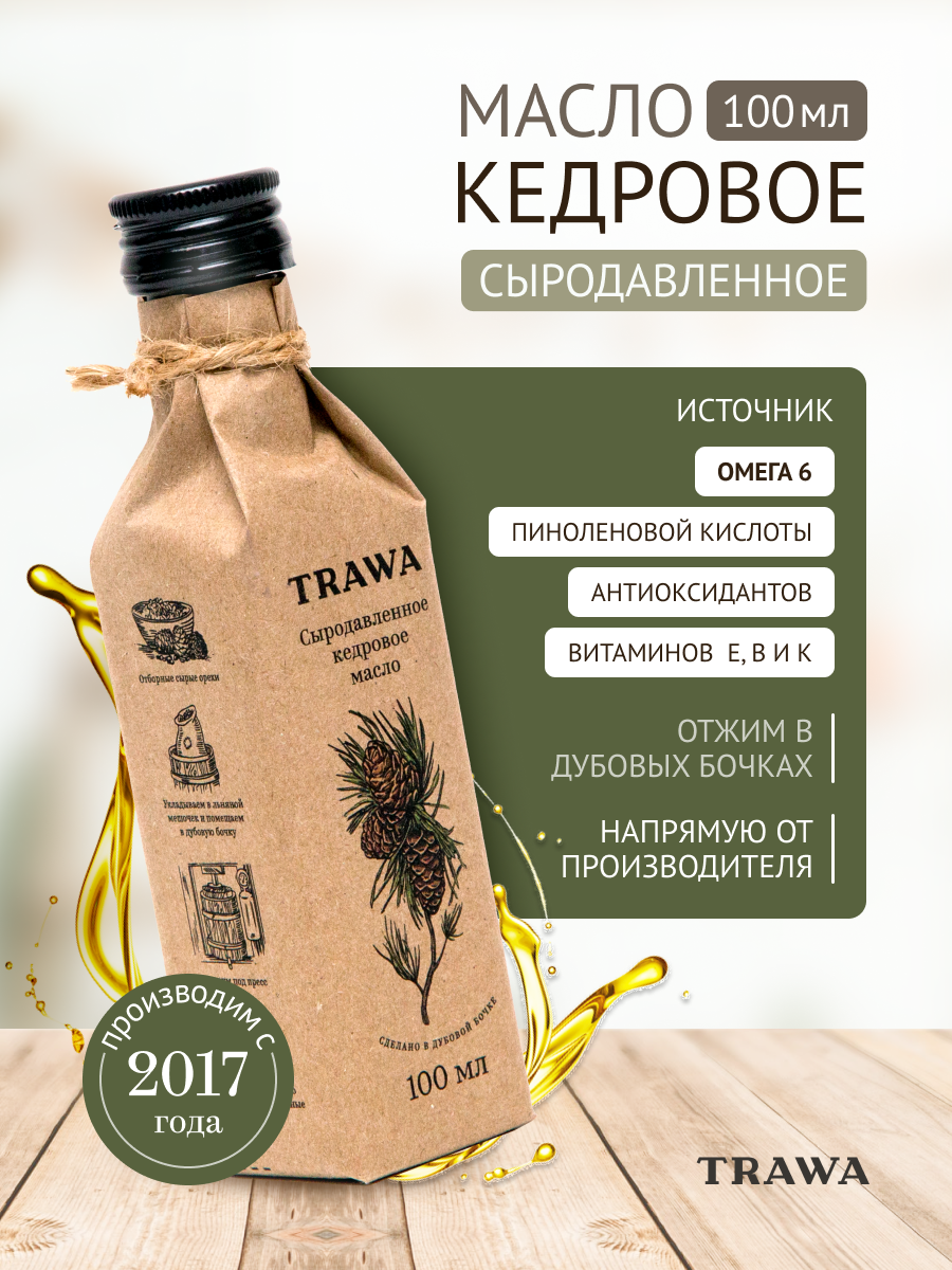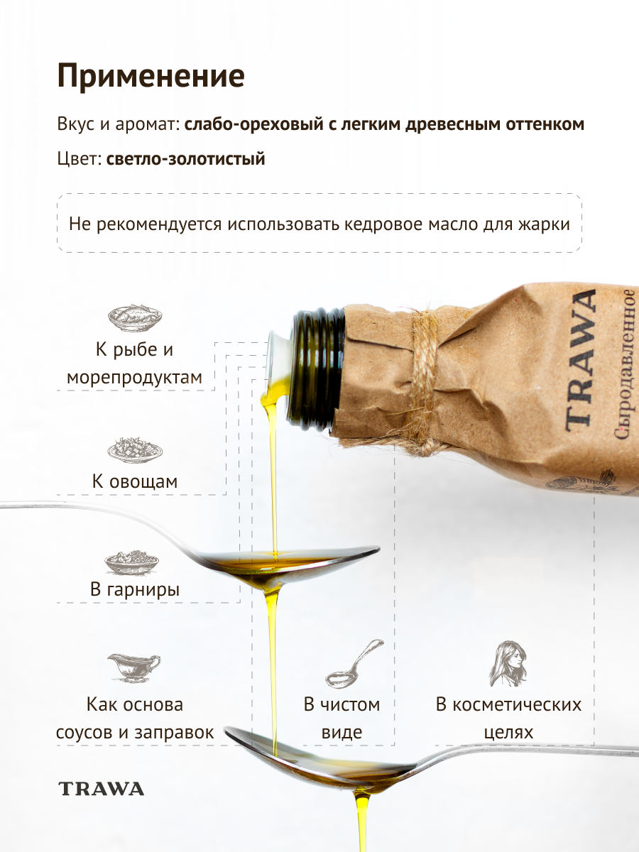 TRAWA Масло кедровое сыродавленное 100 мл нерафинированное холодный отжим интересное: