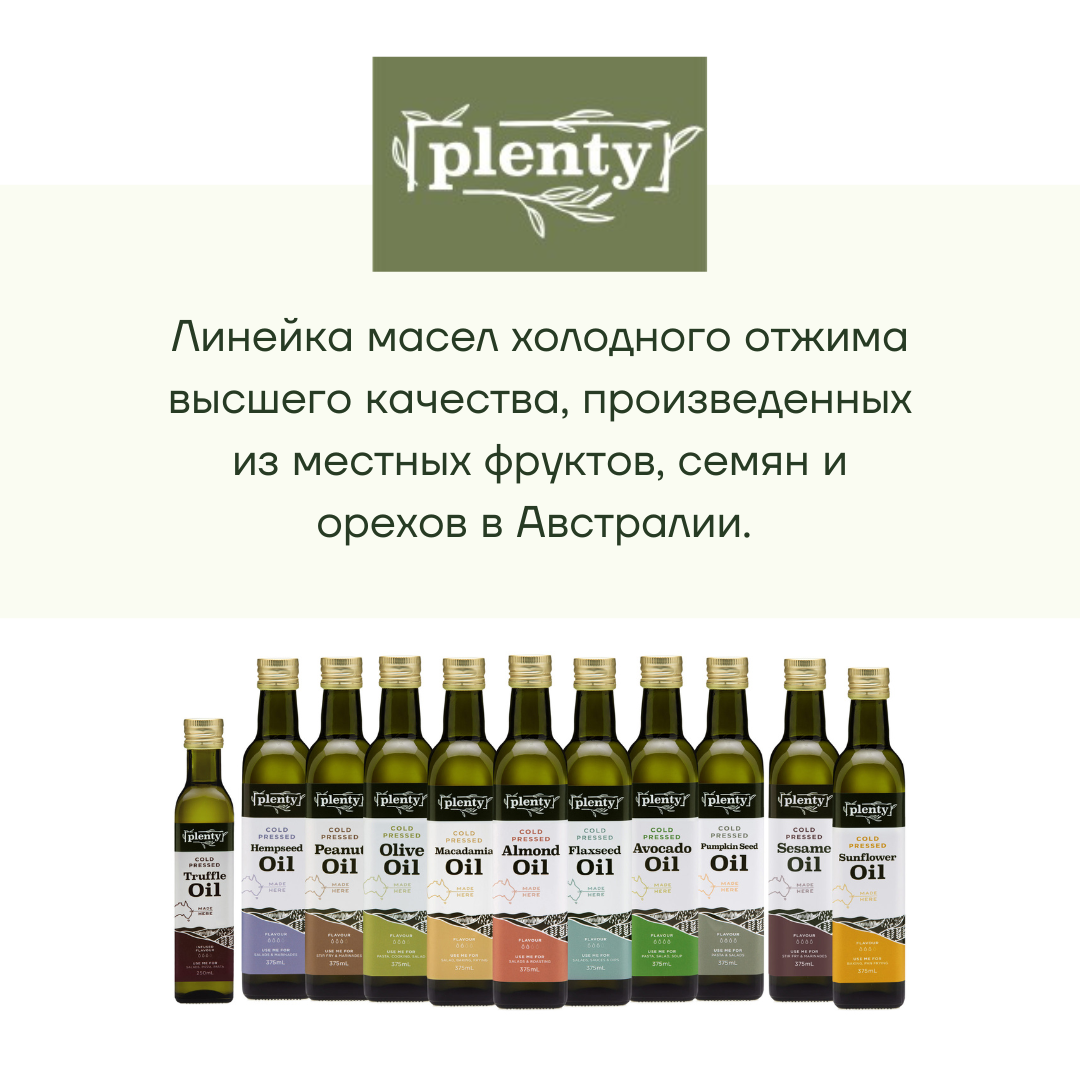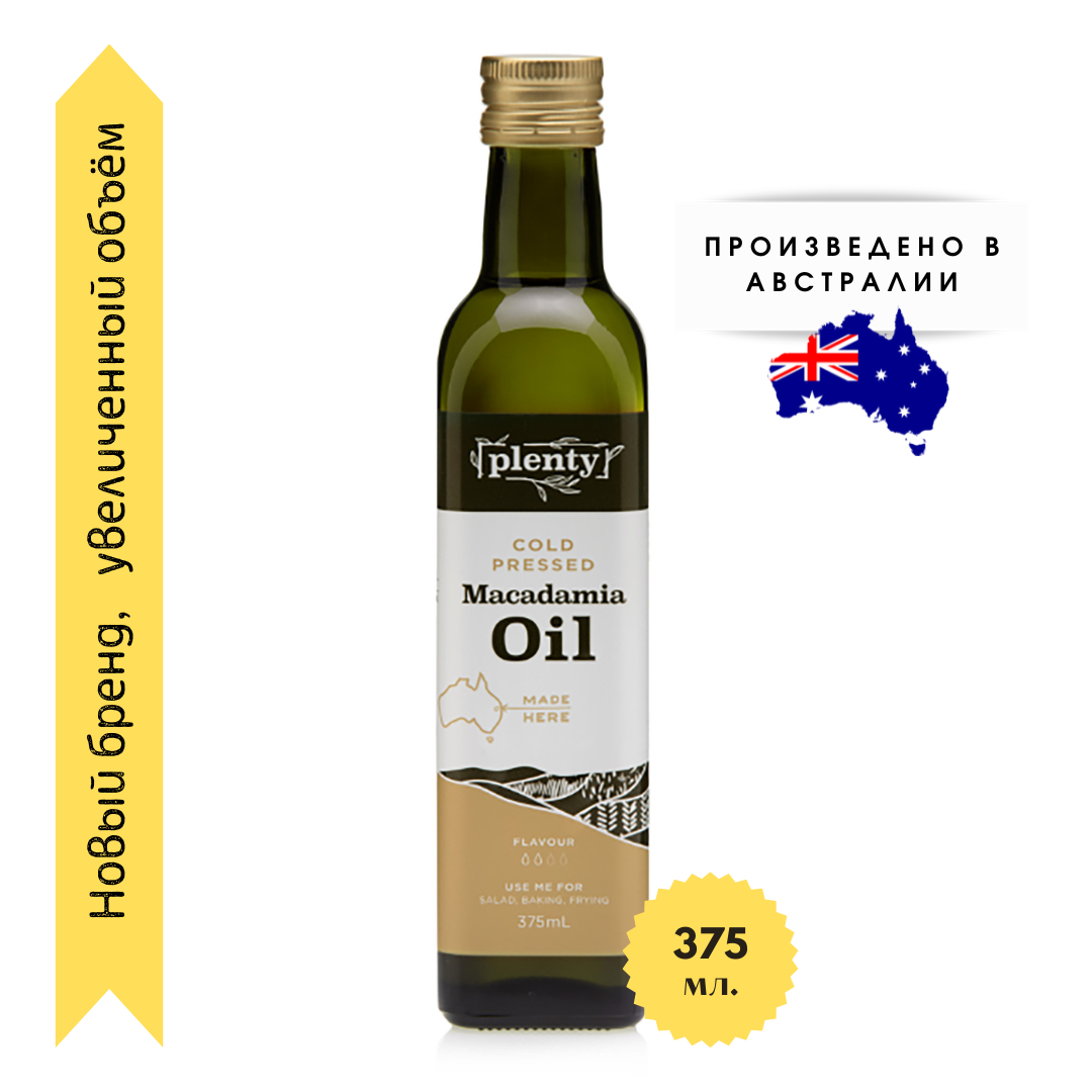 Масло Макадамии Австралия Нерафинированное Первый Холодный Отжим Plenty 375 мл, стекло интересное: