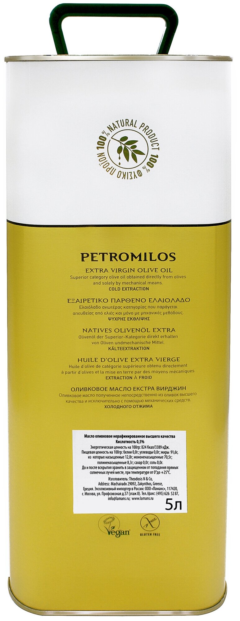 Оливковое масло PETROMILOS холодного отжима высшего качества Extra Virgin, кислотность 0,5%, ж/б, 5 л (Греция) интересное: