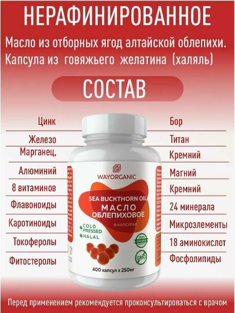 Облепиховое масло холодного отжима в капсулах WAY ORGANIC, 400 шт. по 250 мг. интересное: