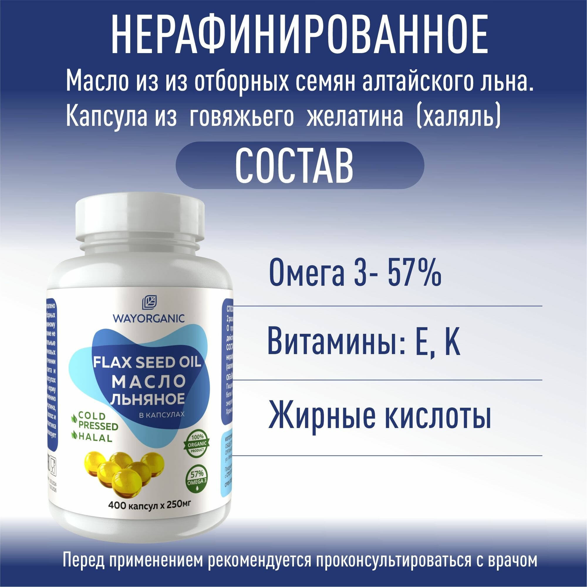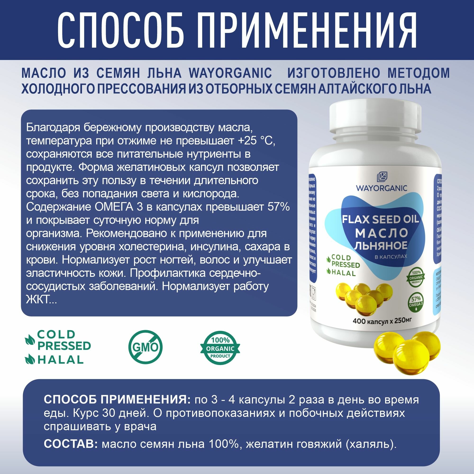 Льняное масло холодного отжима в капсулах WAY ORGANIC, 400 шт. по 250 мг. интересное:
