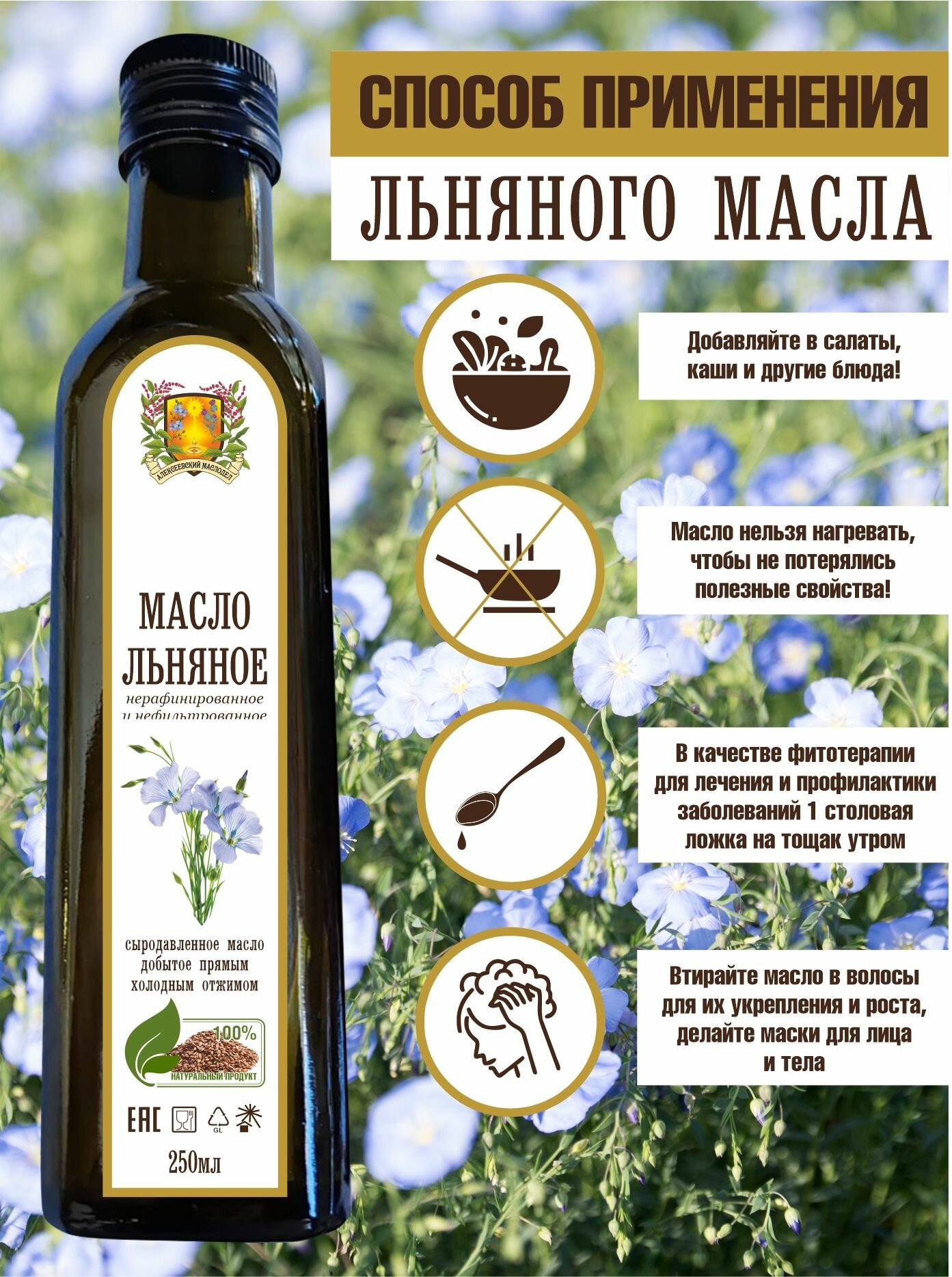 Масло Алексеевский маслодел, льняное, нерафинированное Extra Virgin, 0,25л, стеклянная бутылка интересное: