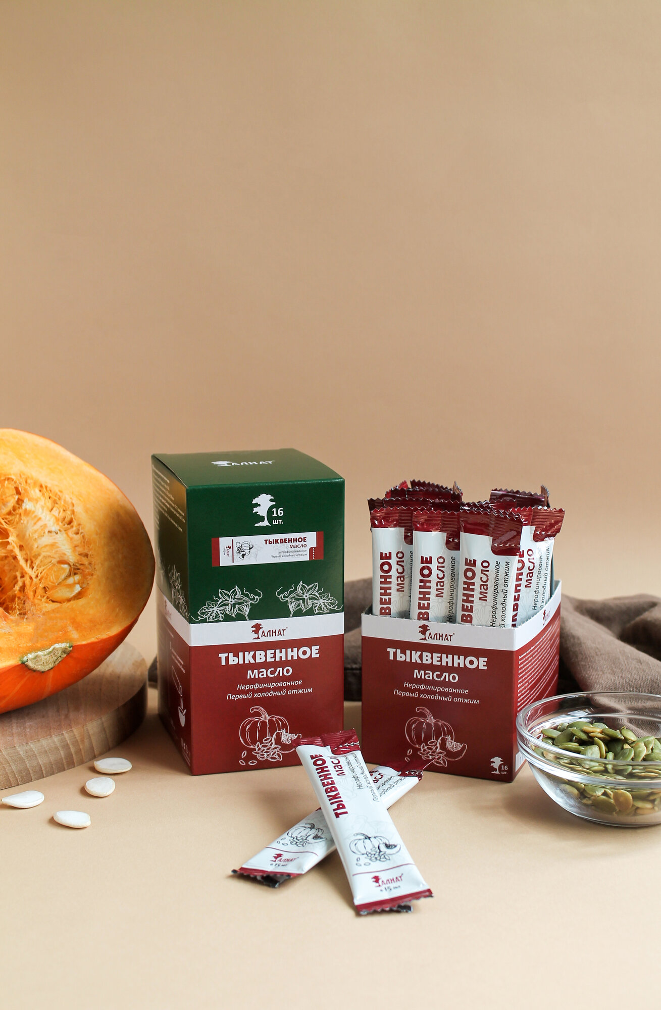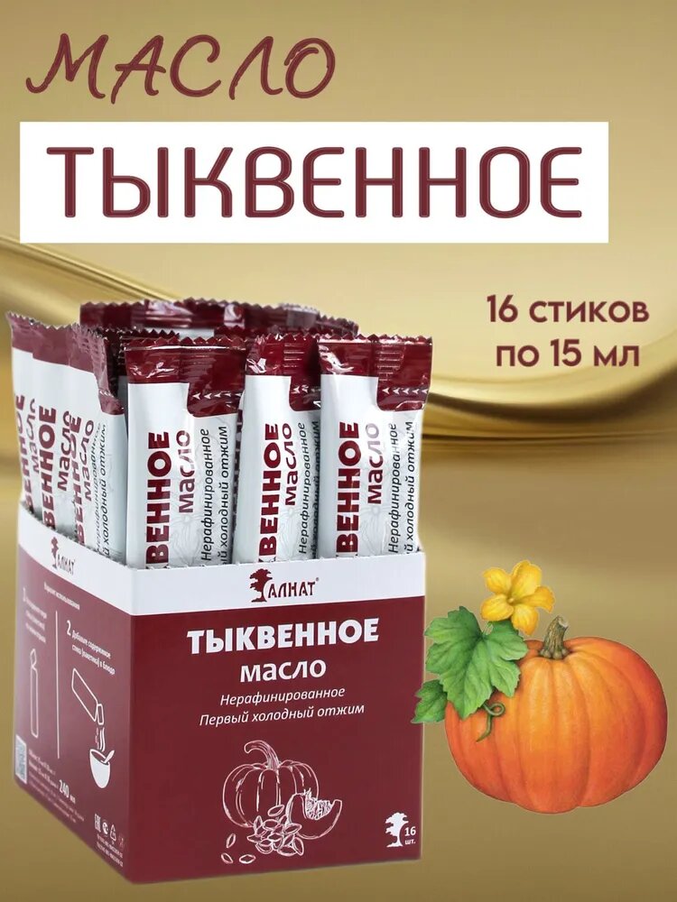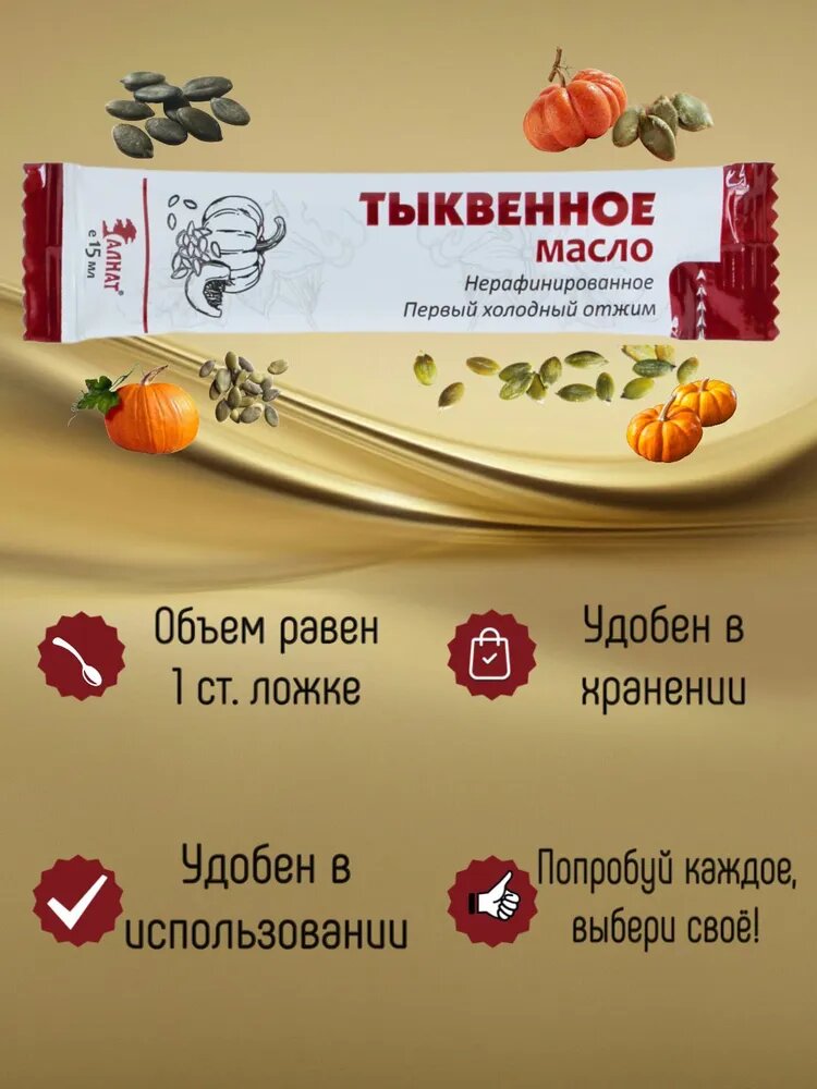Тыквенное масло холодного отжима порционное, из семян голосемянной тыквы, Алнат, 240 мл (15 мл*16 шт) интересное: