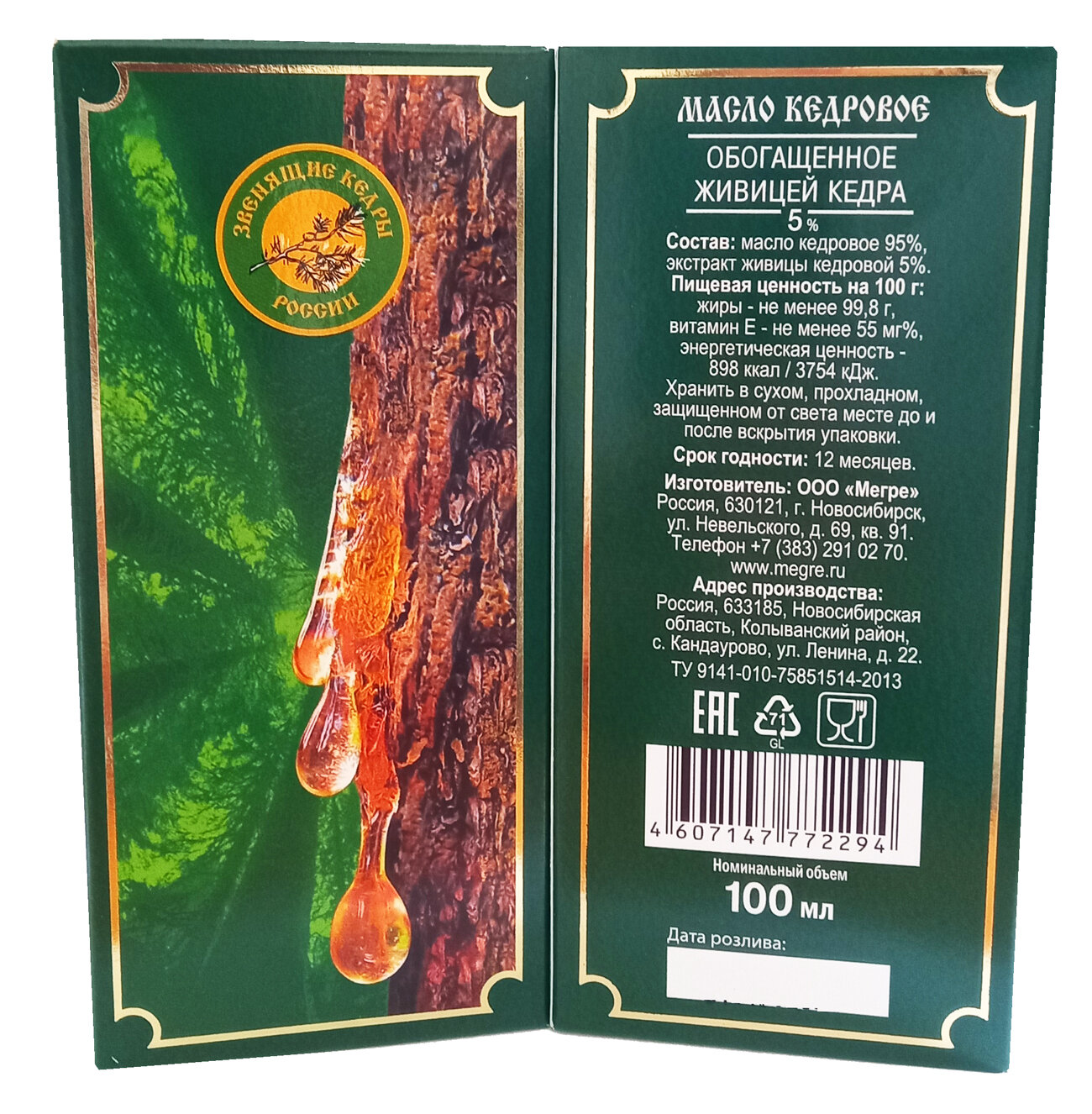 Кедровое масло сыродавленное обогащенное живицей 5% интересное: