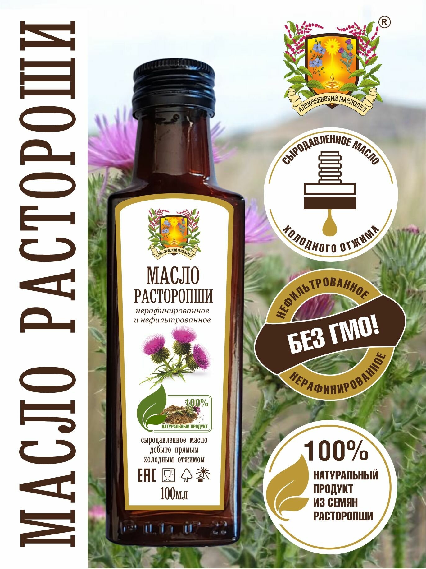 Купить Масло расторопши Алексеевский маслодел, нерафинированное, Extra Virgin, 0,1 л