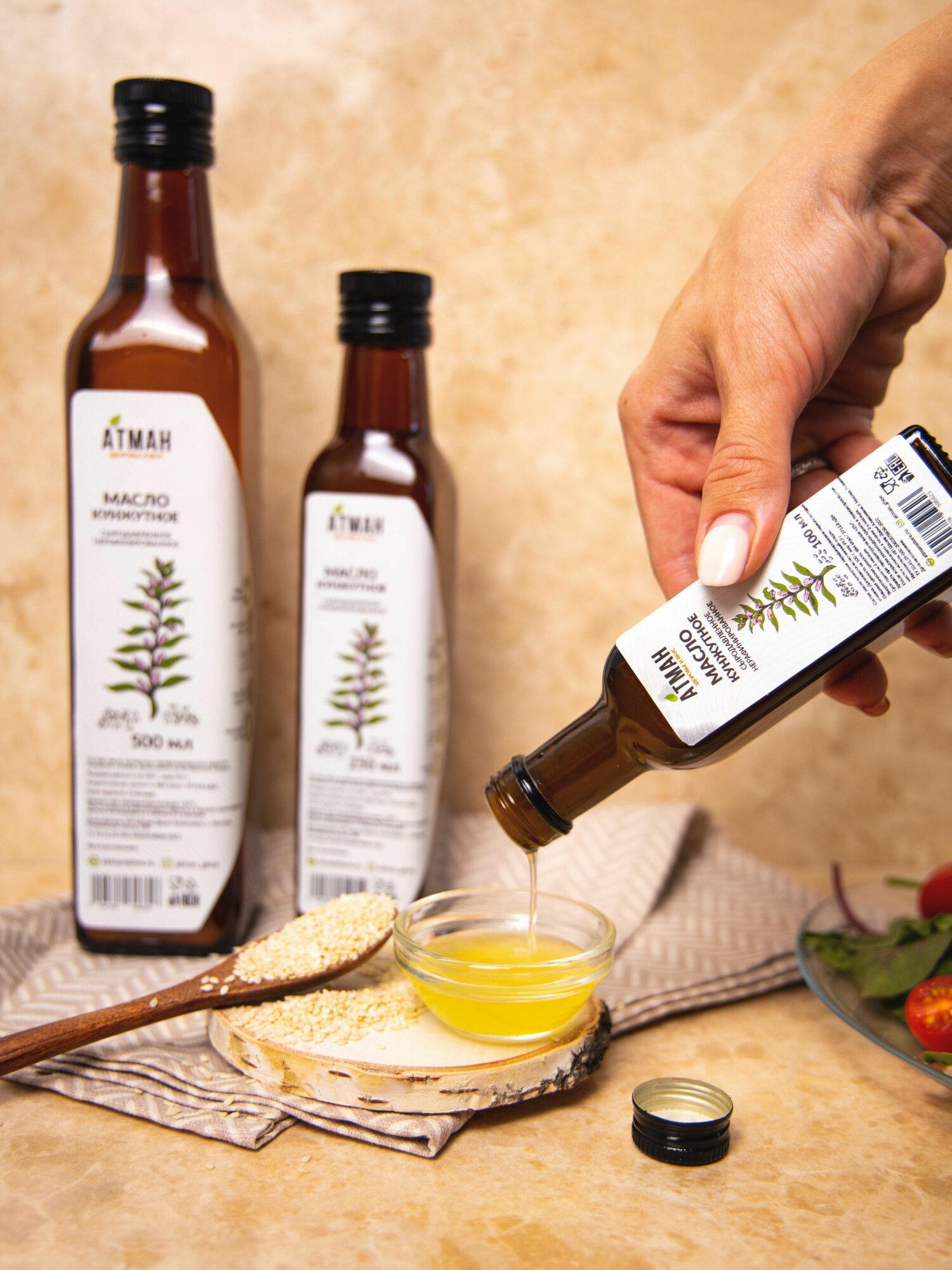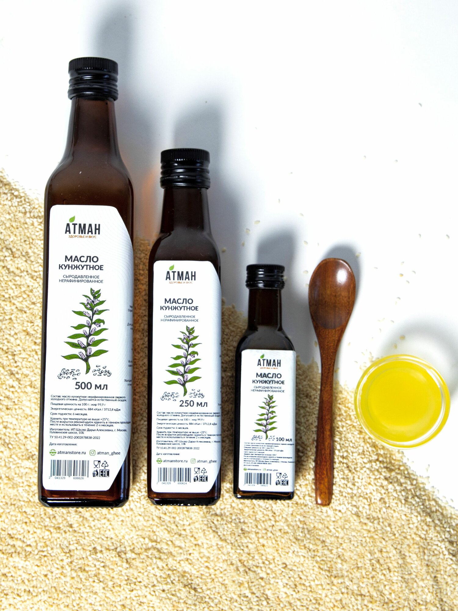 Кунжутное масло, сыродавленное нерафинированное растительное масло, здоровое питание в пост, АТМАН, 100 мл
