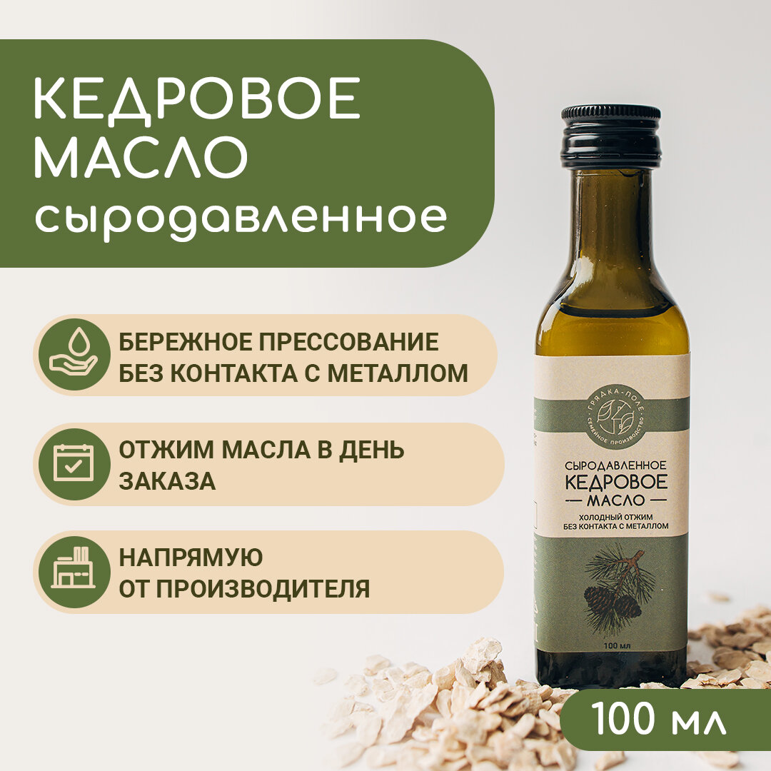 Кедровое масло холодного отжима, сыродавленное Грядка-Поле, 100 мл интересное: