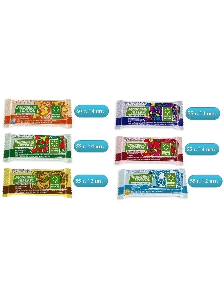 Батончик "Здоровый перекус" ассорти 20шт. интересное: