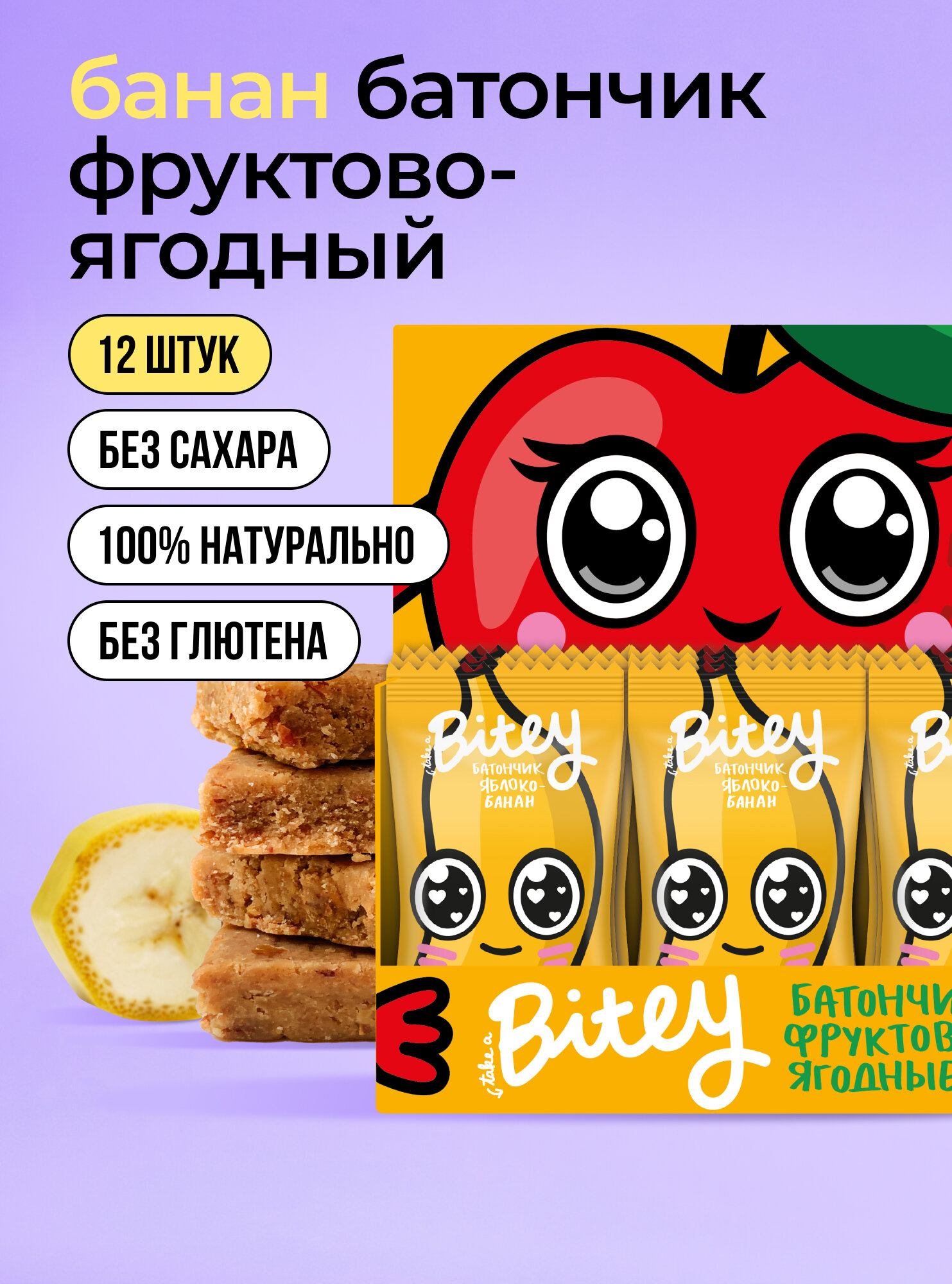 Батончики без сахара фруктово-ягодные Take a Bitey / Bite Банан, 12 шт по 25 гр интересное: