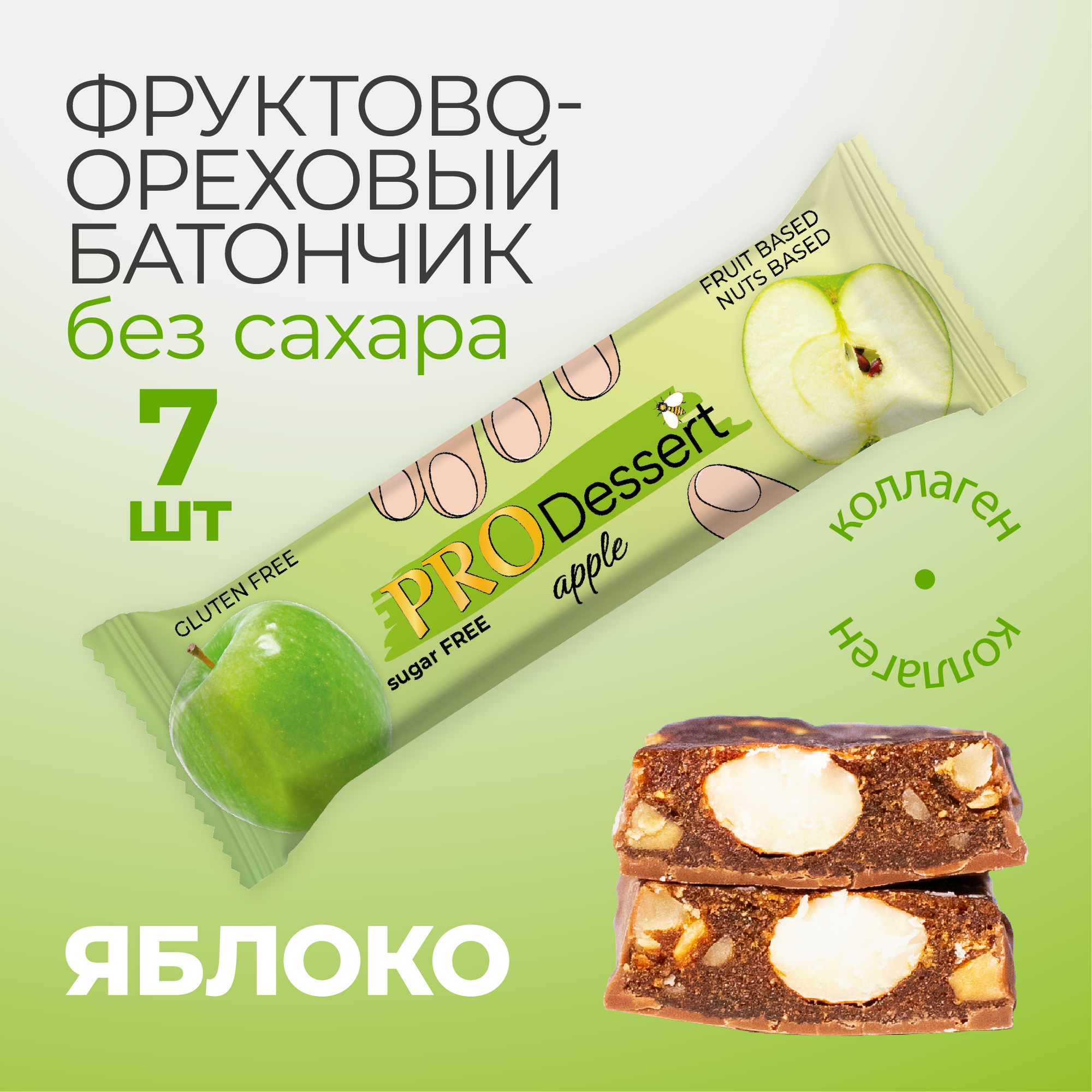 Батончик-десерт фруктово-ореховый без сахара "Яблоко" PRO Dessert 30г. (7шт) интересное: