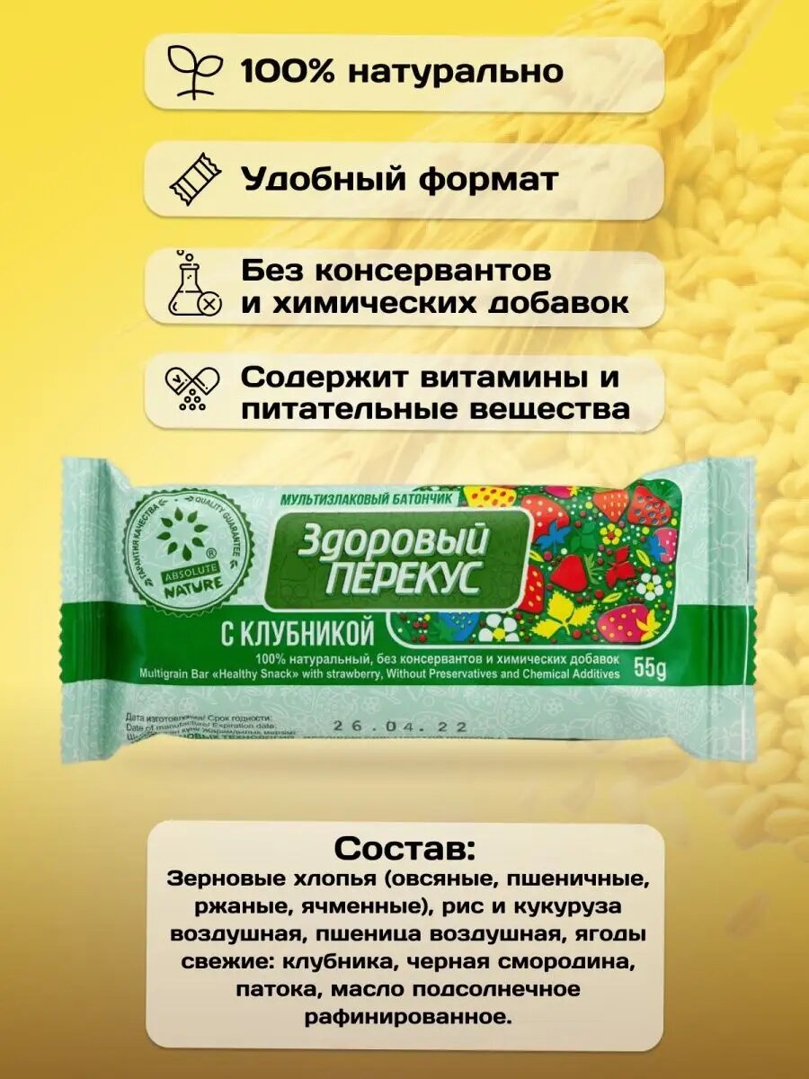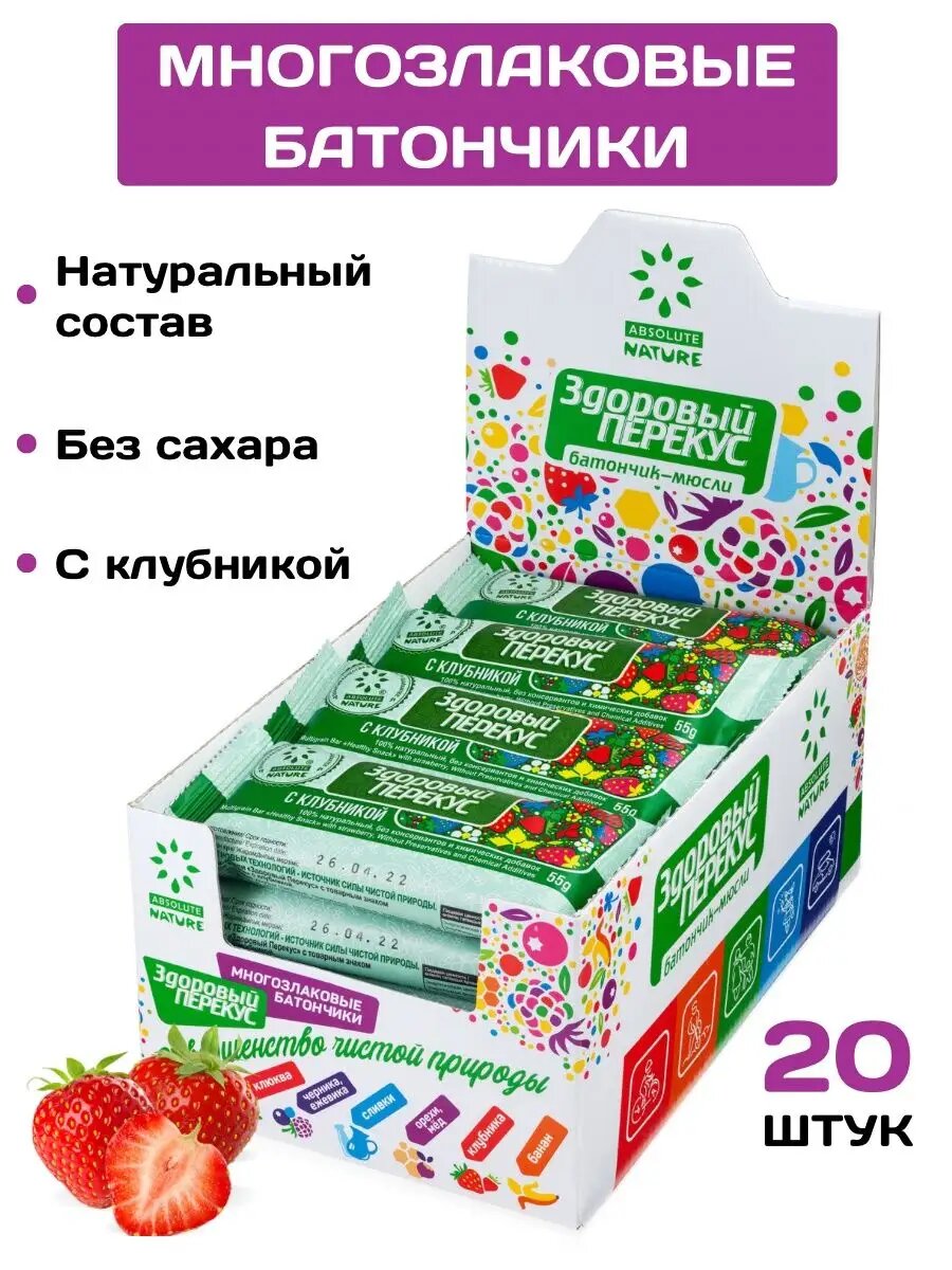 Злаковый батончик Absolute NATURE Здоровый перекус без сахара с клубникой