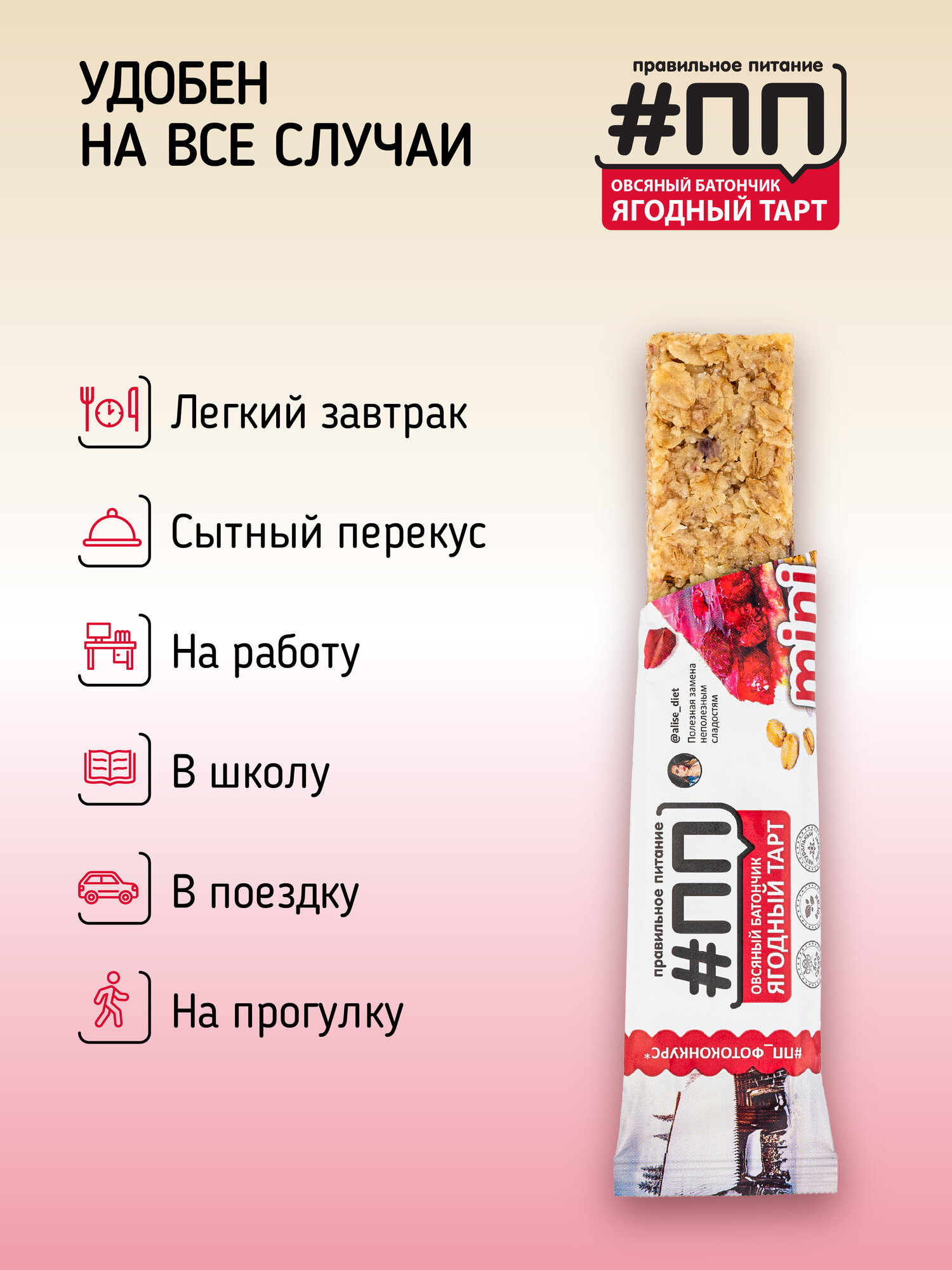 Батончики овсяные без сахара #ПП mini Ягодный тарт 25 грамм набор 15 шт веган интересное: