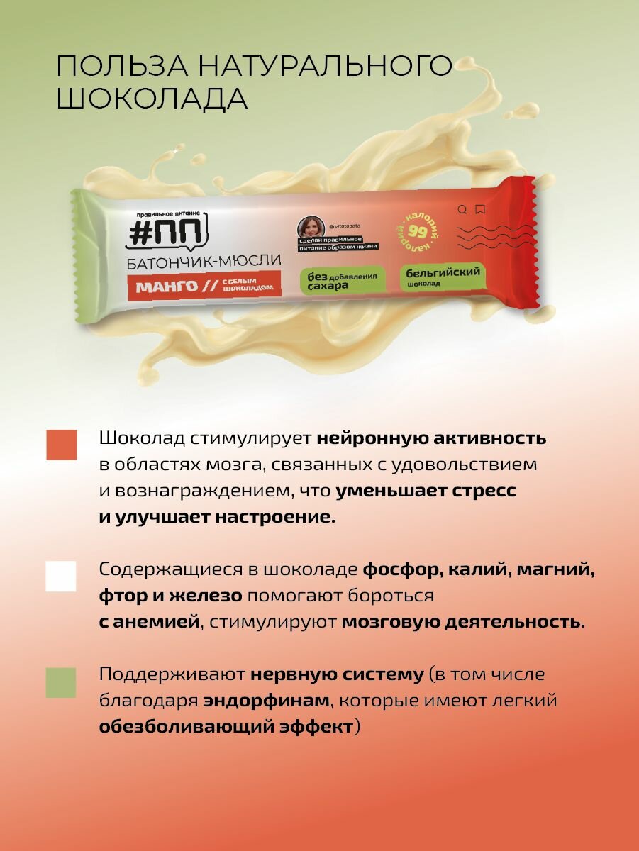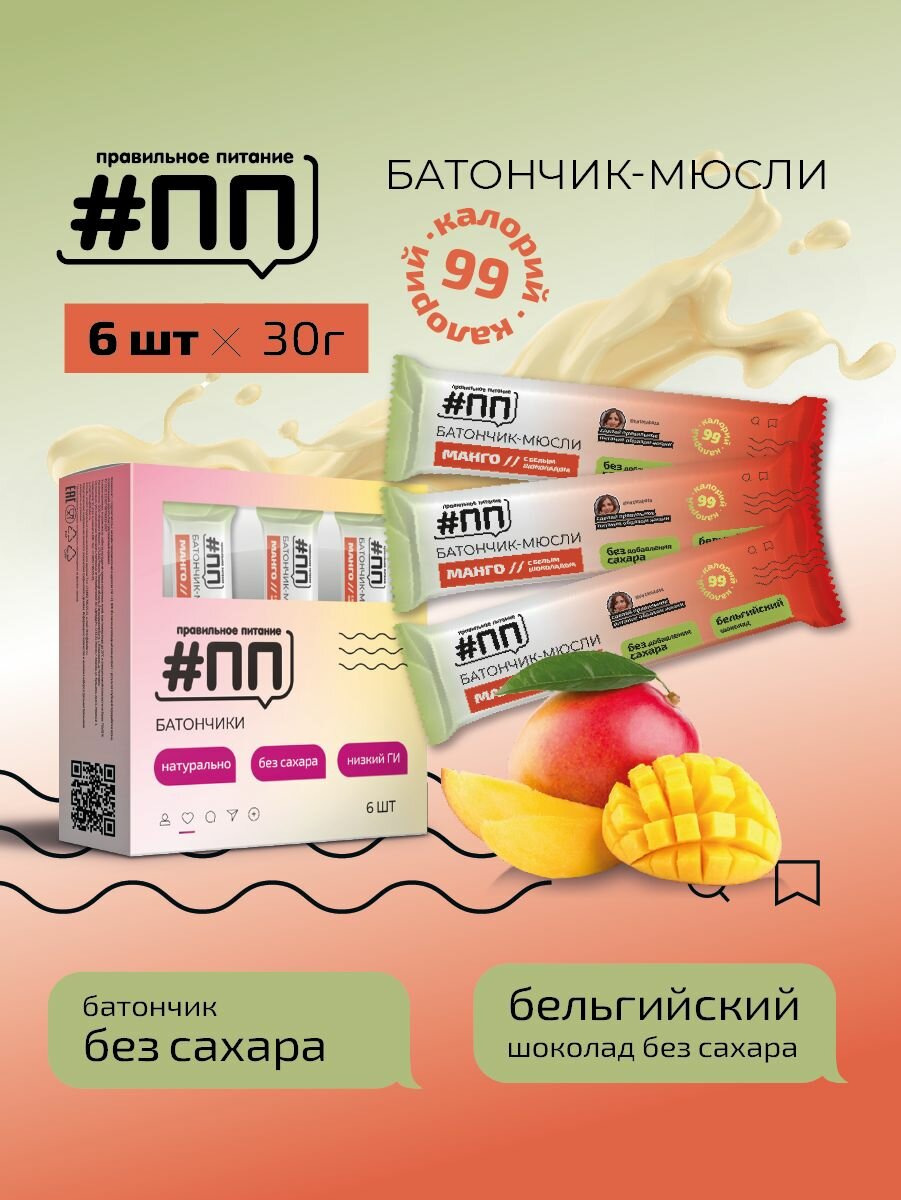 Батончики мюсли без сахара Манго с бельгийским шоколадом 6 шт по 30 гр интересное: