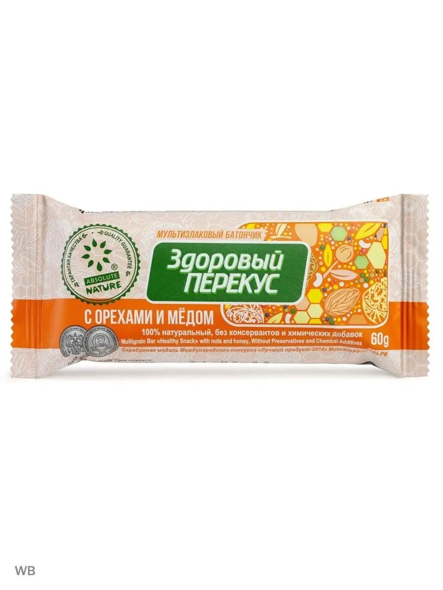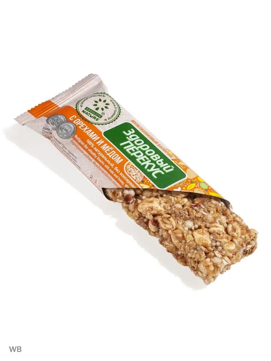 Батончики злаковые Здоровый перекус орех-мед 20шт без сахара интересное: