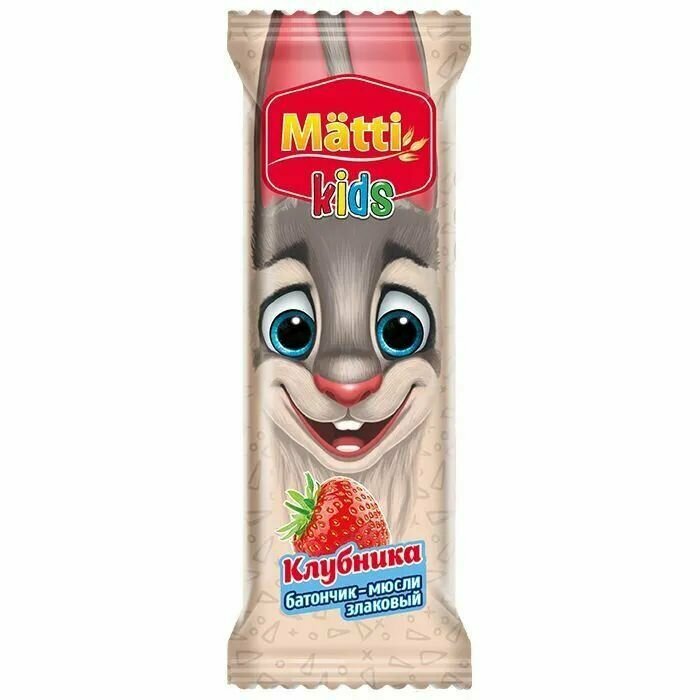 Злаковые батончики-мюсли MATTI KIDS клубника 24 г х 24 штуки, снэки на перекус интересное: