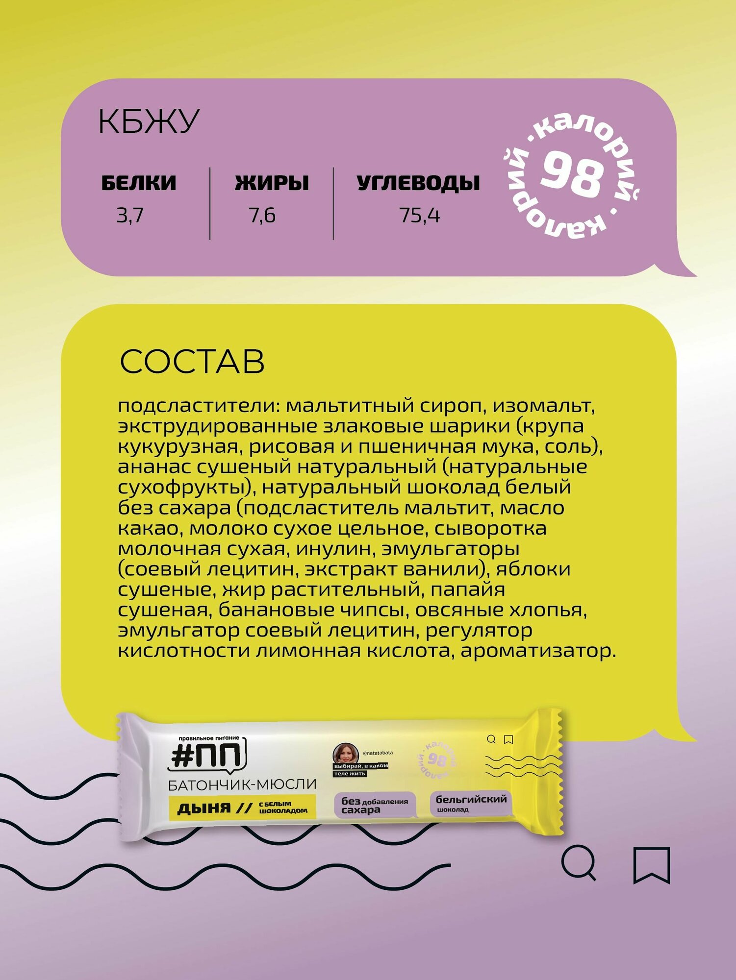 Батончики мюсли без сахара Дыня с белым бельгийским шоколадом 6 шт по 30 гр интересное: