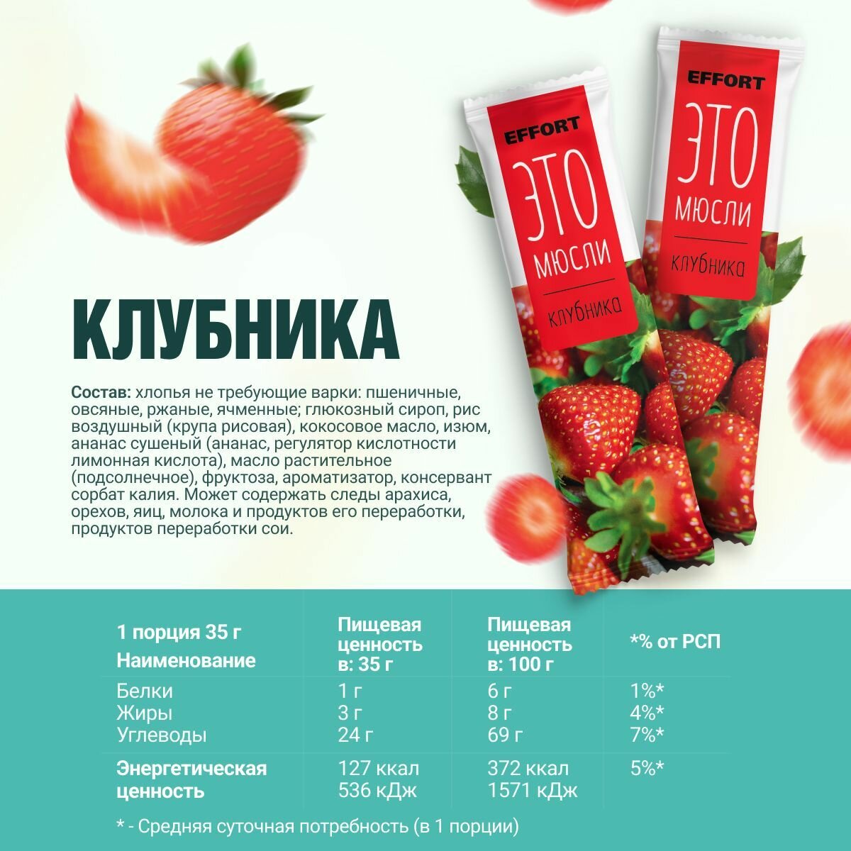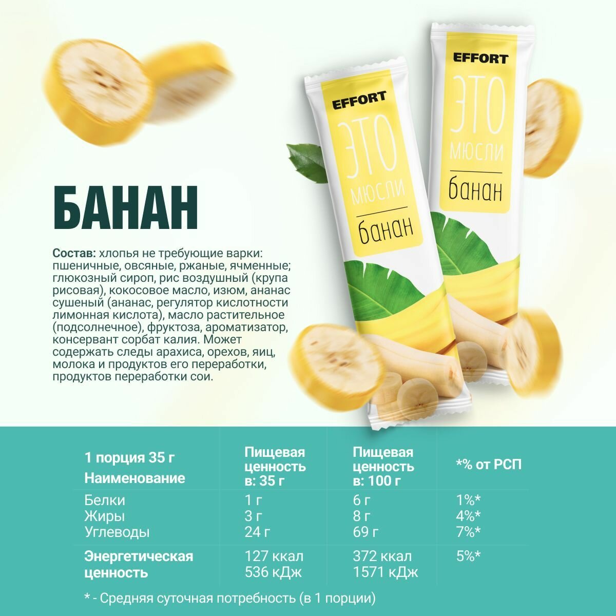 Батончики Effort злаковые с бананом и клубникой ассорти 28 шт по 35 гр интересное: