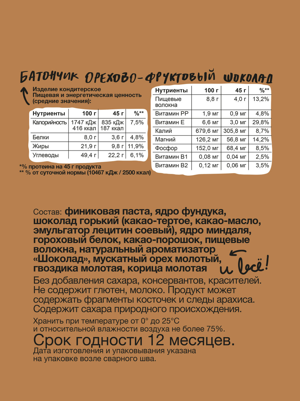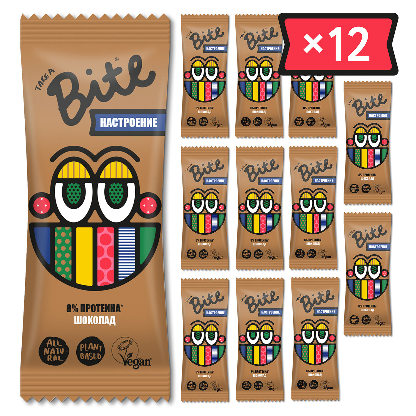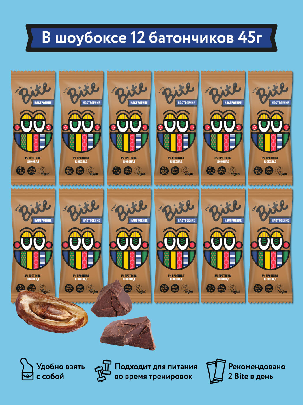 Батончики орехово-фруктовые без сахара Take a Bite, Шоколад, 12 шт по 45 гр интересное: