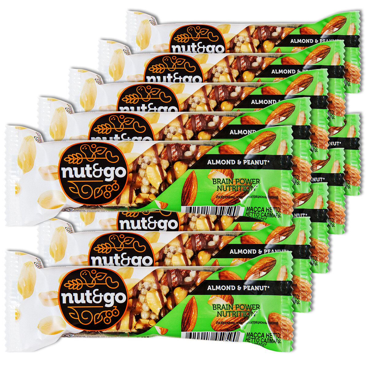 Купить Ореховый батончик Nut&Go арахис, миндаль, арахисовая паста, 36 г, 10 шт.