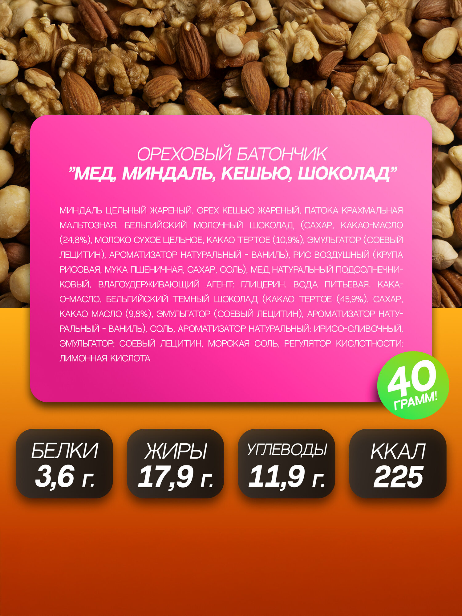 SOJ, Протеиновые батончики, Мед миндаль кешью с шоколадом, 20шт х 40г интересное: