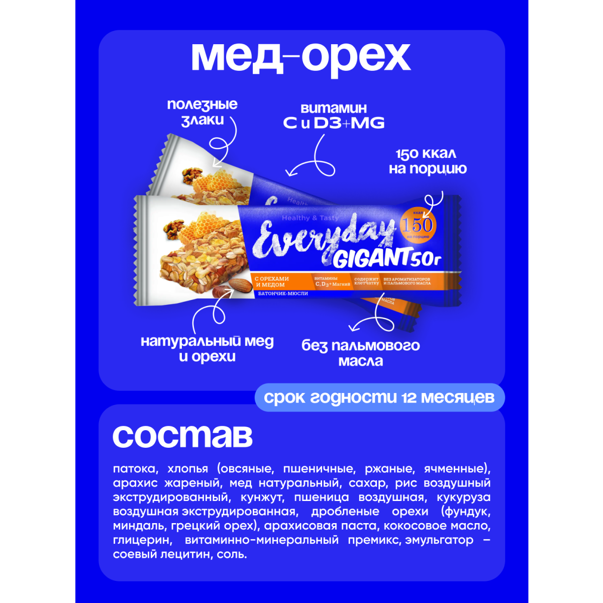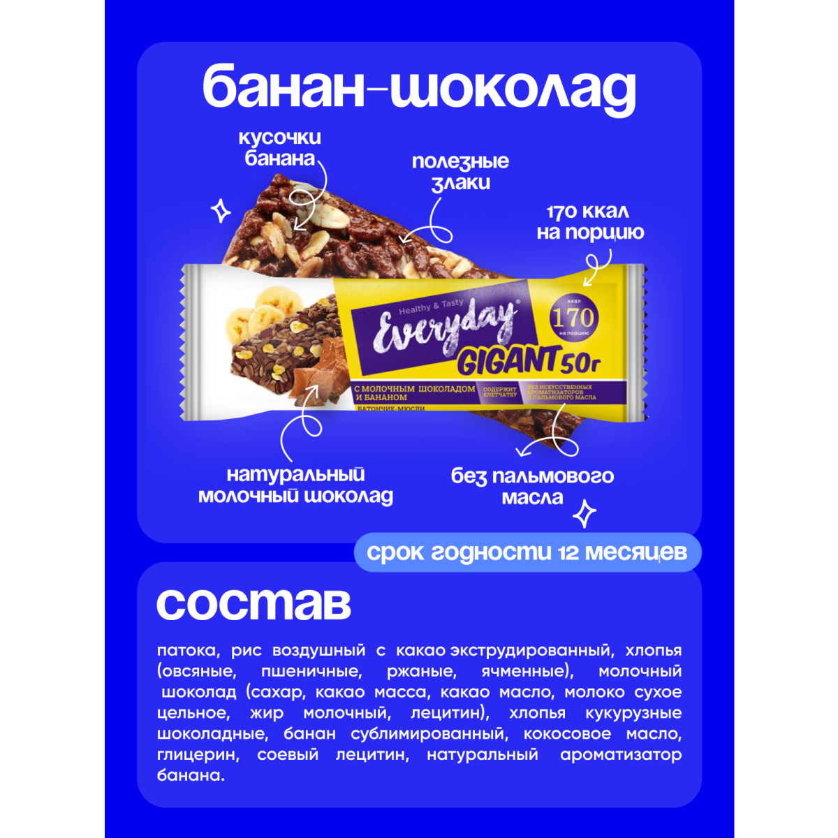 Злаковый батончик Ассорти набор Everyday, 50 гр. - ш/б 24 шт. интересное: