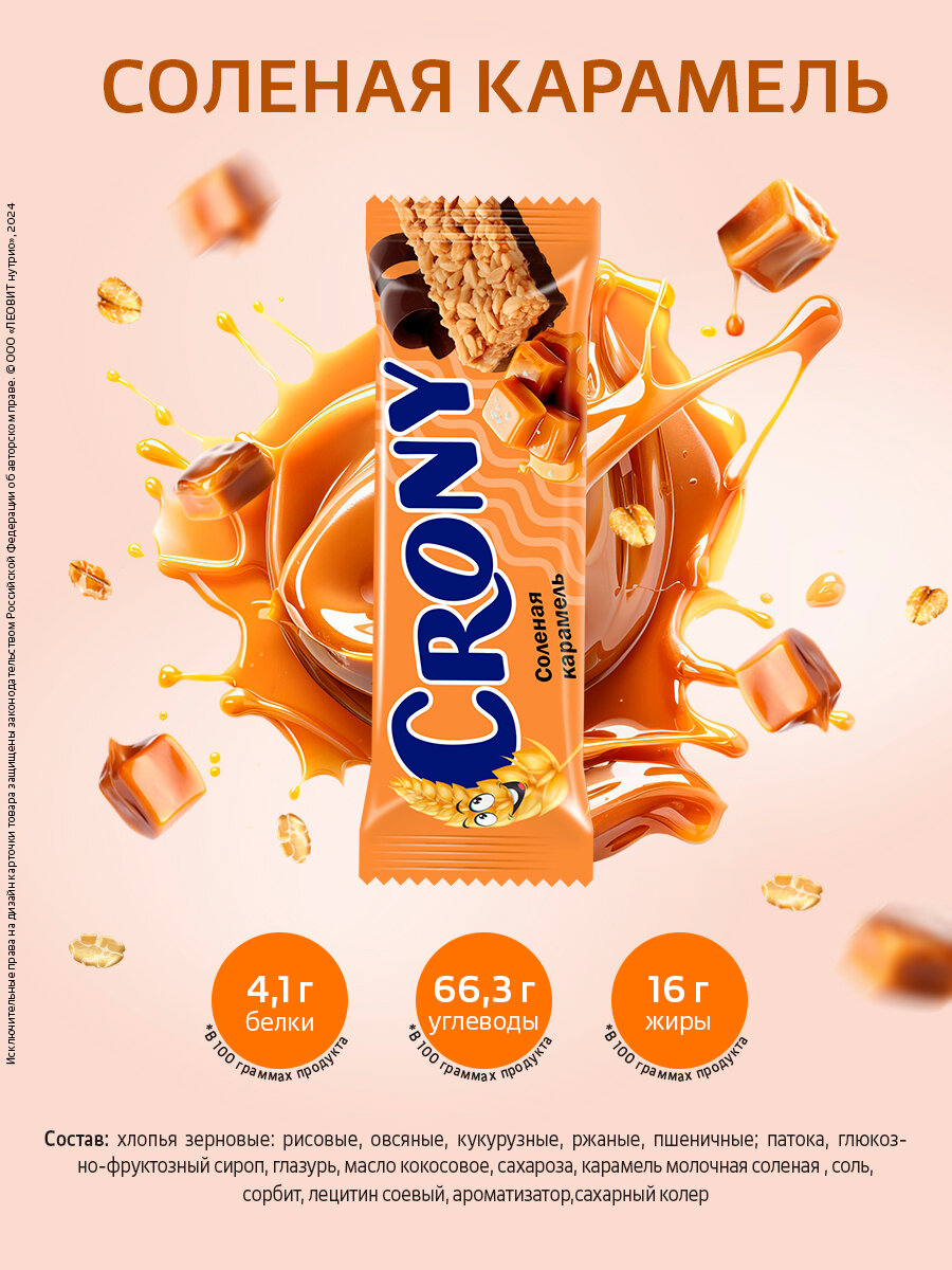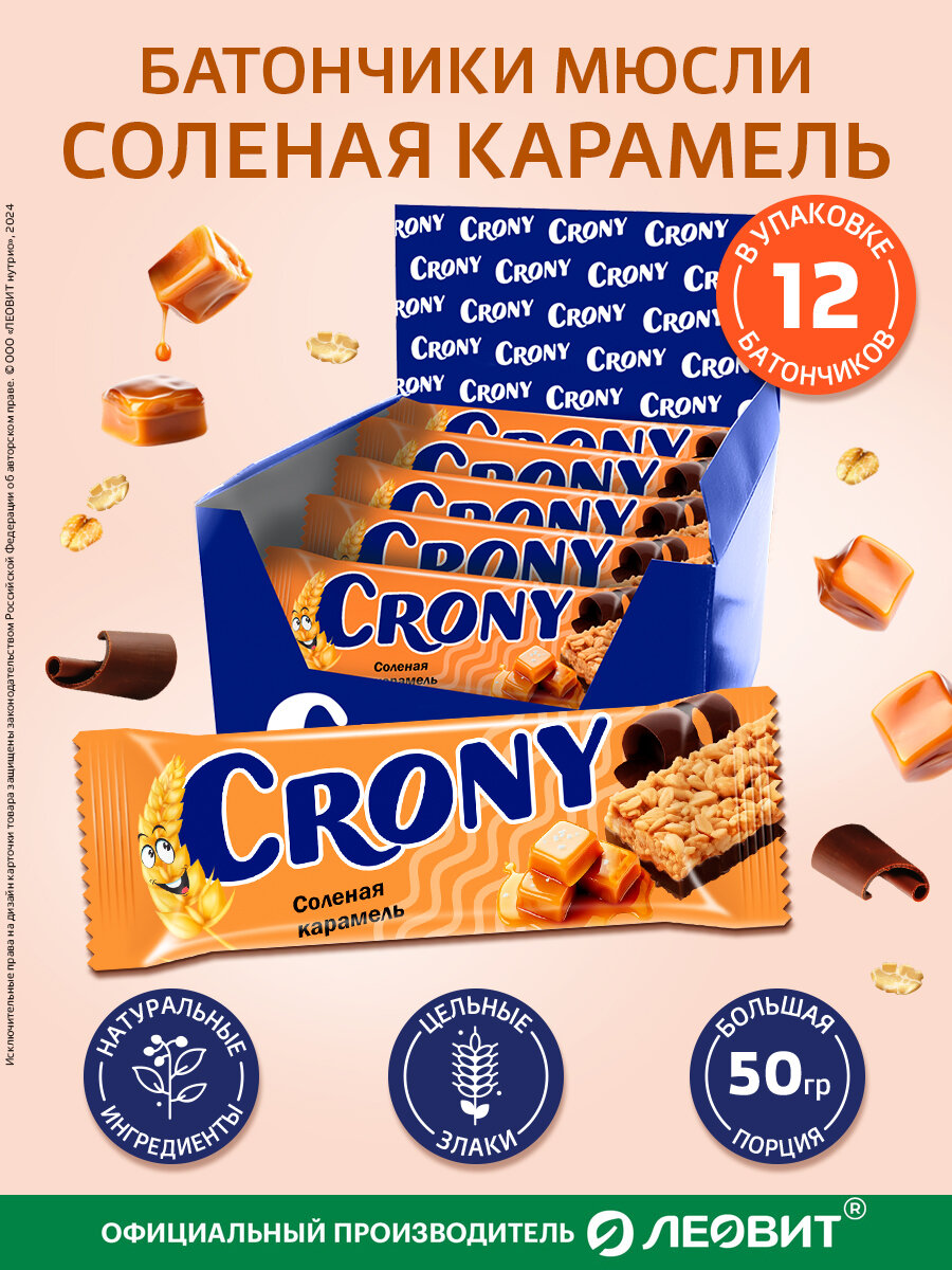 Мюсли батончики злаковые набор 12 штук по 50 гр Соленая карамель CRONY ЛЕОВИТ интересное: