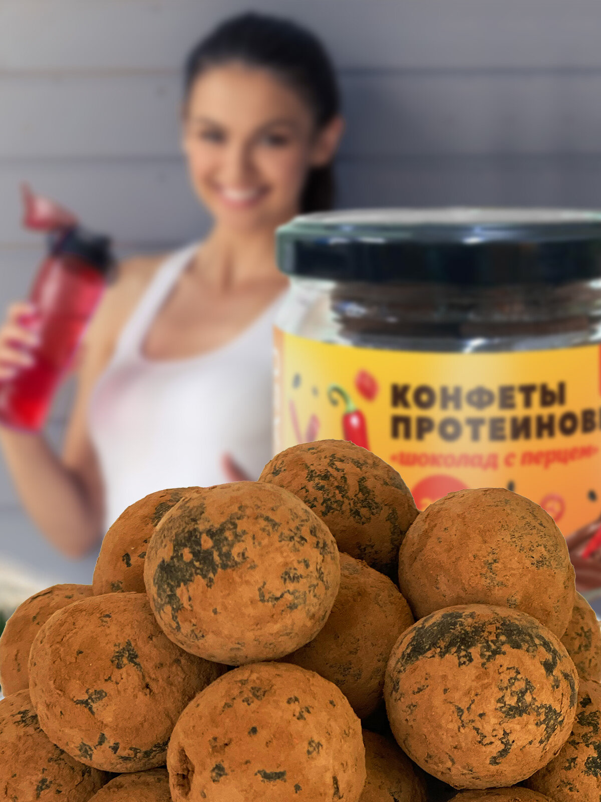Купить Протеиновые шарики (мини батончики) "Шоколад с перцем", без сахара, на чёрном кунжуте