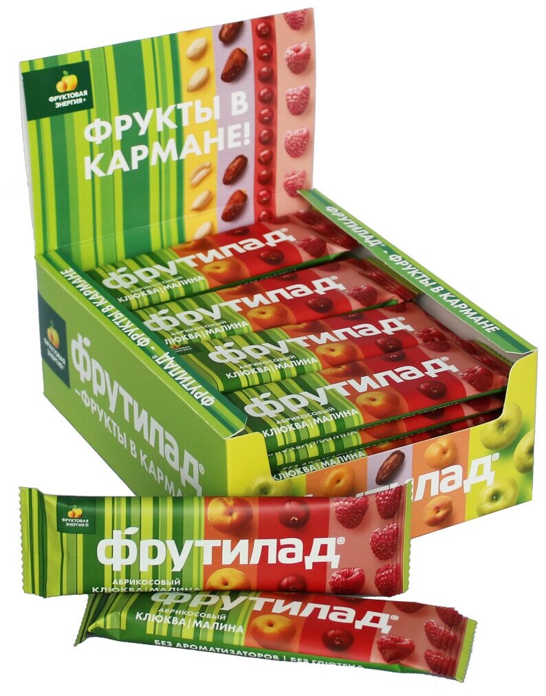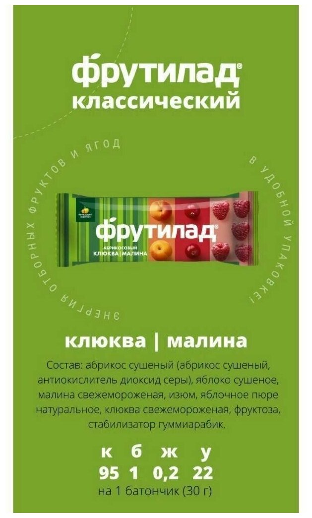Фруктовый батончик неглазированный Фрутилад "Клюква-малина", 24 штуки, без сахара интересное: