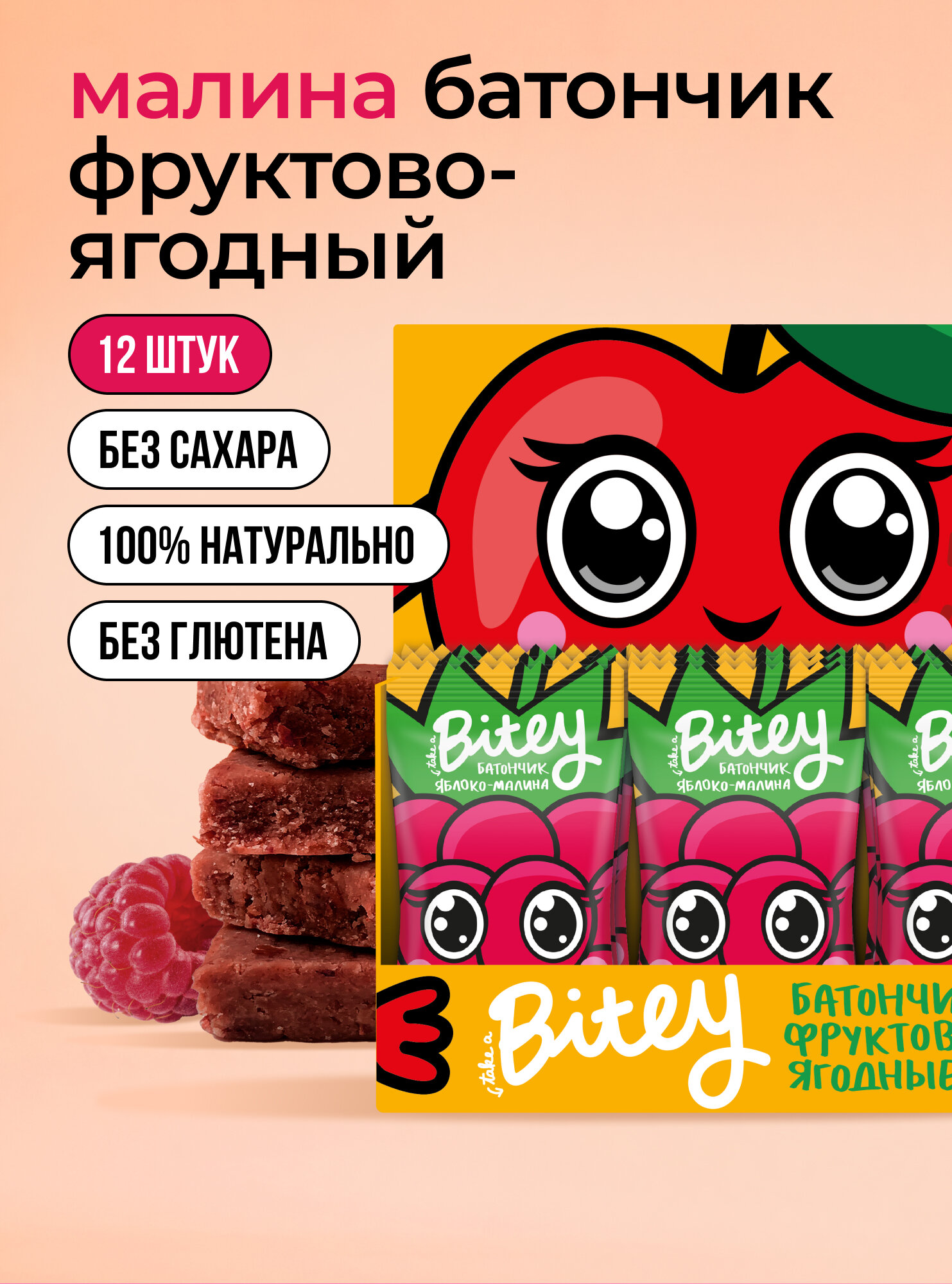 Батончики без сахара фруктово-ягодные Take a Bitey / Bite, Яблоко-Малина 12 шт по 25 гр интересное:
