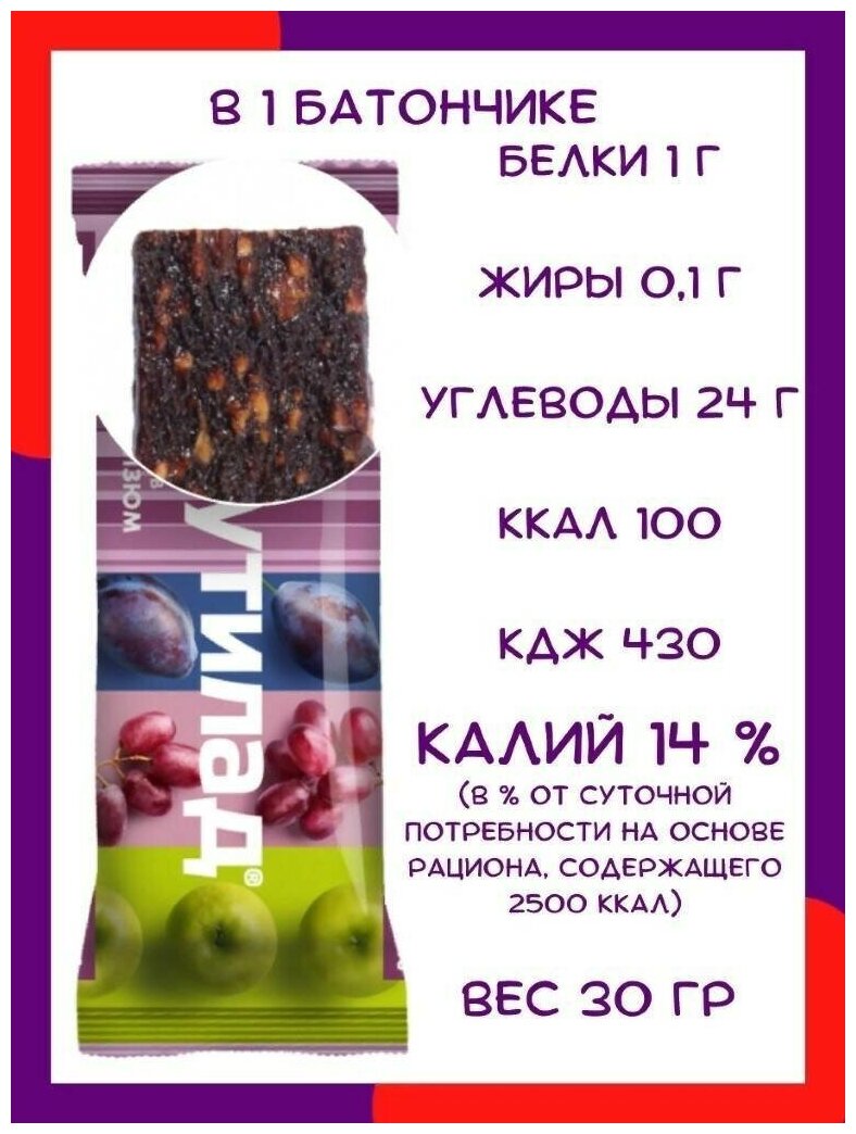 Фруктовый батончик неглазированный Фрутилад Чернослив-30г по 24 шт интересное: