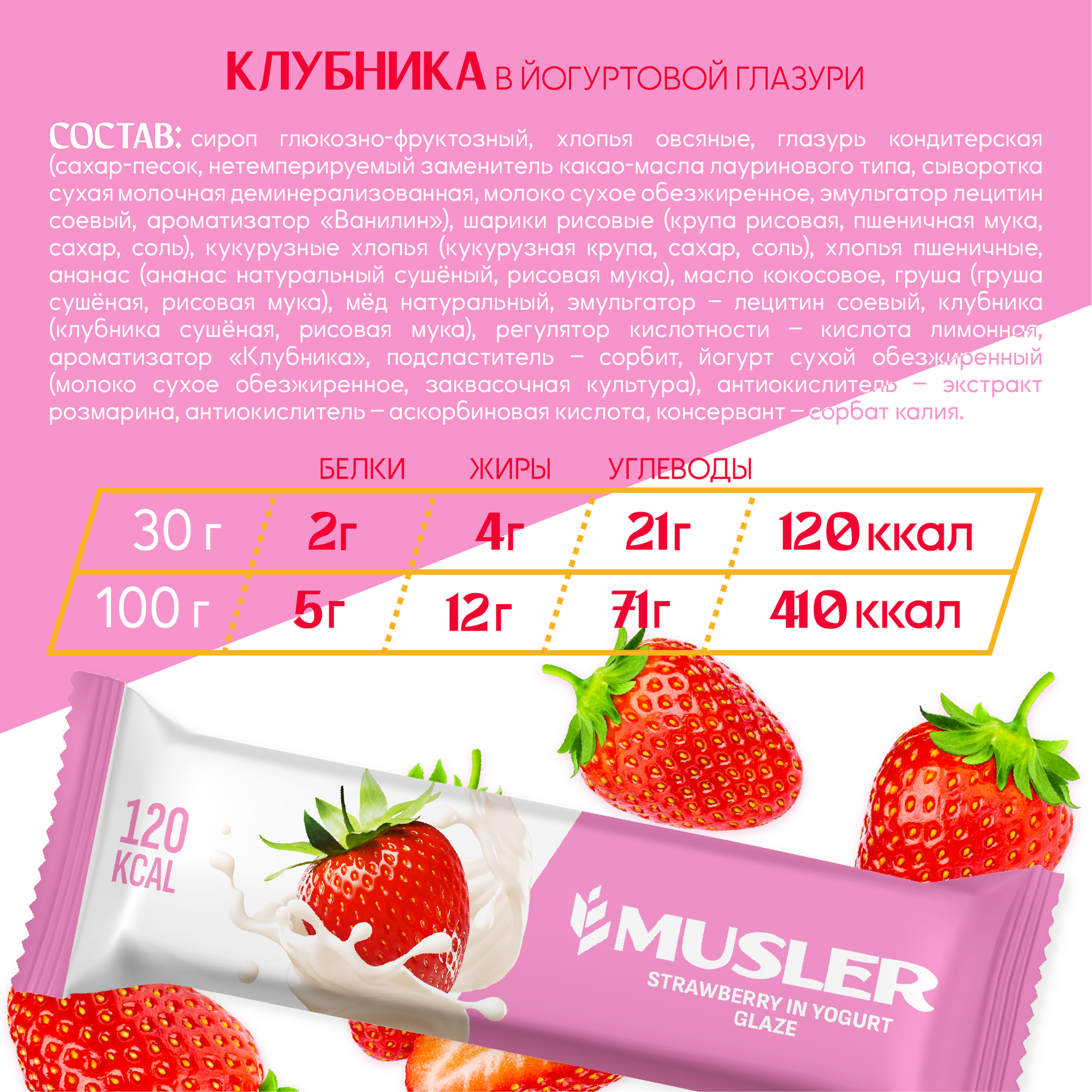 Злаковые батончики мюсли Musler Клубника в йогурте 30г (25 шт) интересное: