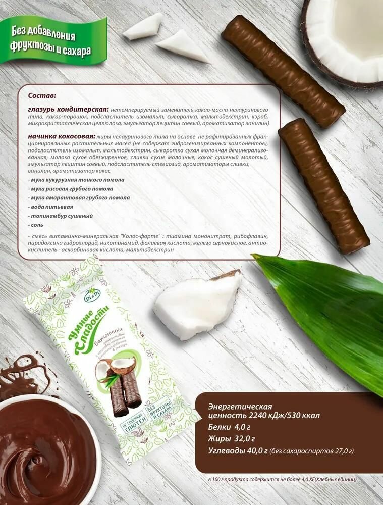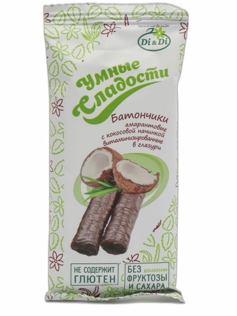 Батончики без сахара и глютена "Умные сладости" с кокосовой начинкой, Di&Di, в наборе 20 шт по 20г интересное: