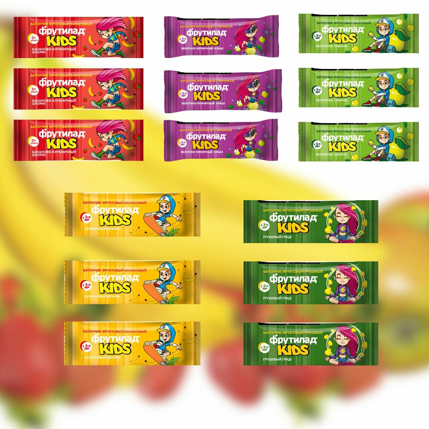 Купить Коллекция натуральных фруктовых батончиков для детского питания "Фрутилад Kids" 5 вкусов*15 батончиков/375 грамм.