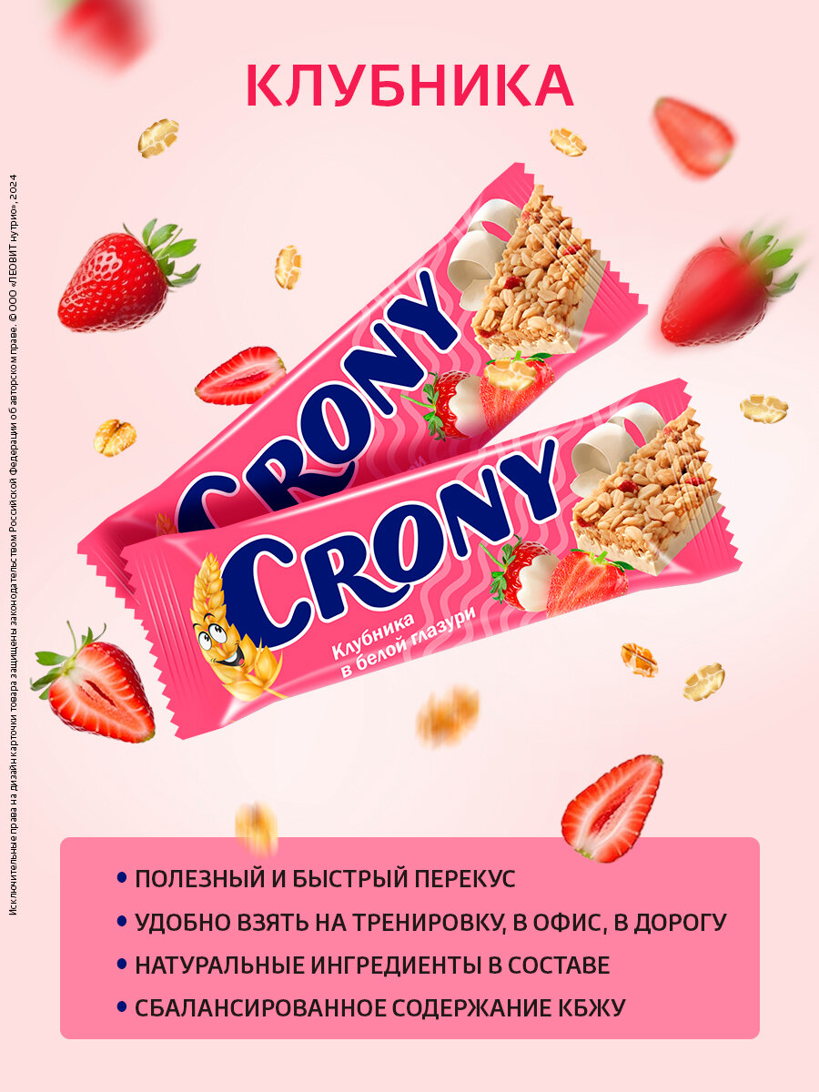 Мюсли батончики злаковые набор 12 штук по 50 гр Клубника CRONY ЛЕОВИТ интересное: