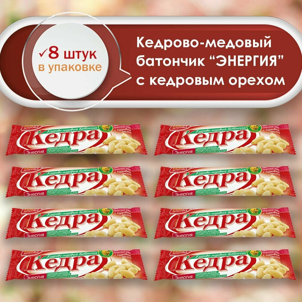 Кедрово-медовый батончик "Энергия" с кедровым орехом Звенящие кедры, 30 г - набор 8 шт интересное: