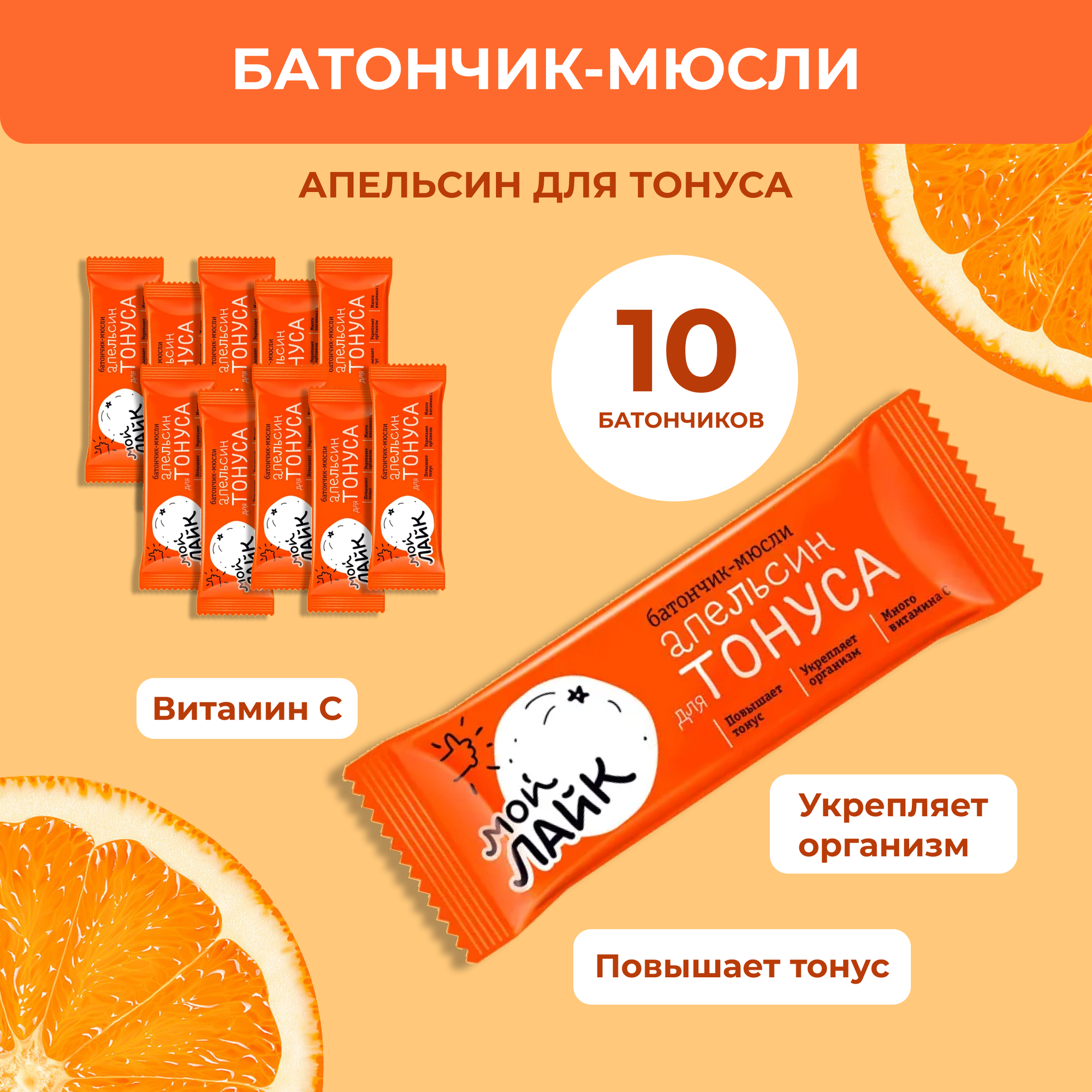 Купить Леовит Батончик Мой Лайк "Апельсин для тонуса", 25 гр, 10 шт.