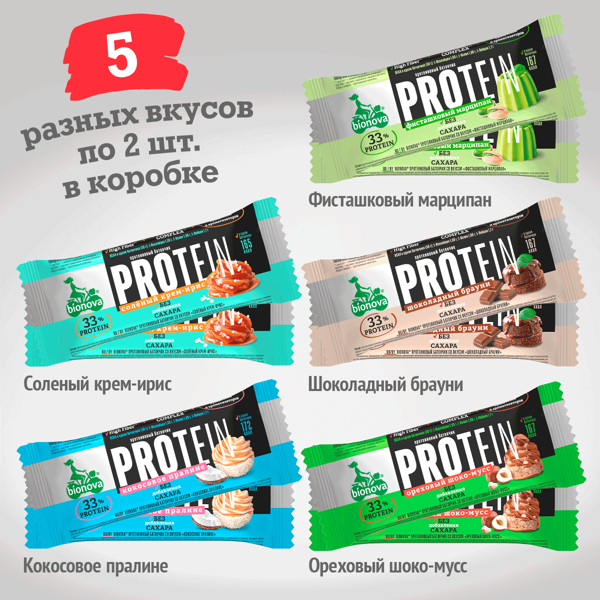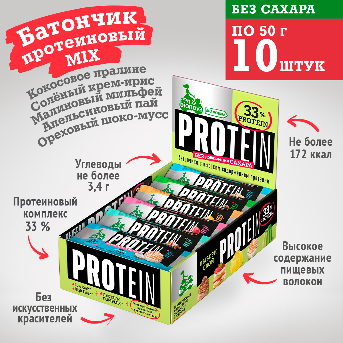 Протеиновый батончик "Bionova" без сахара - Микс № 1 интересное: