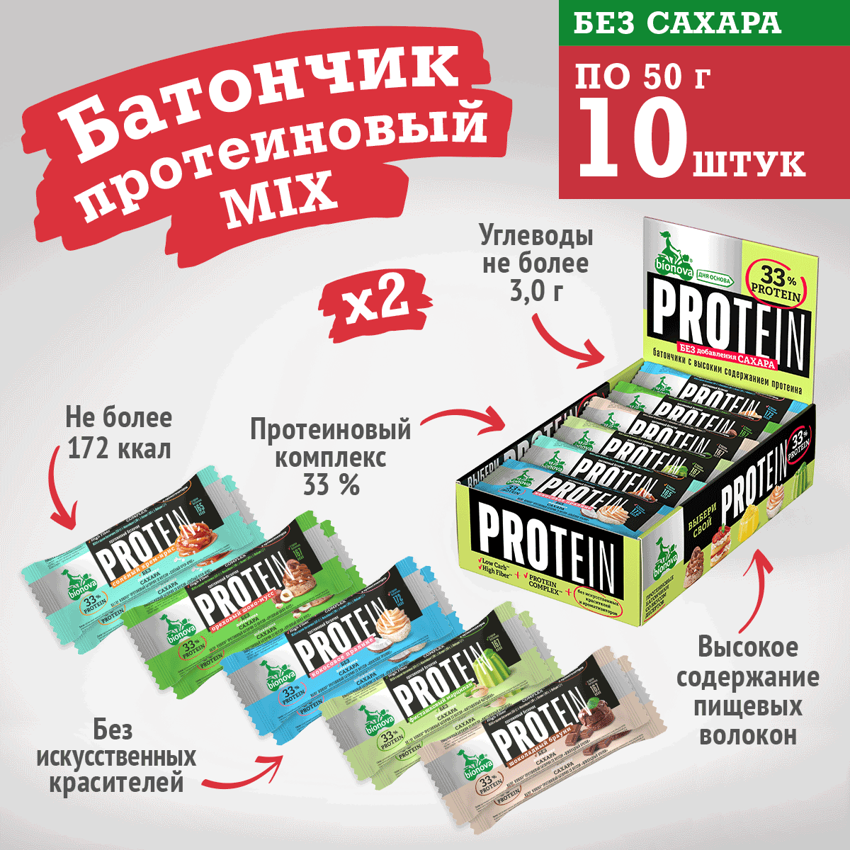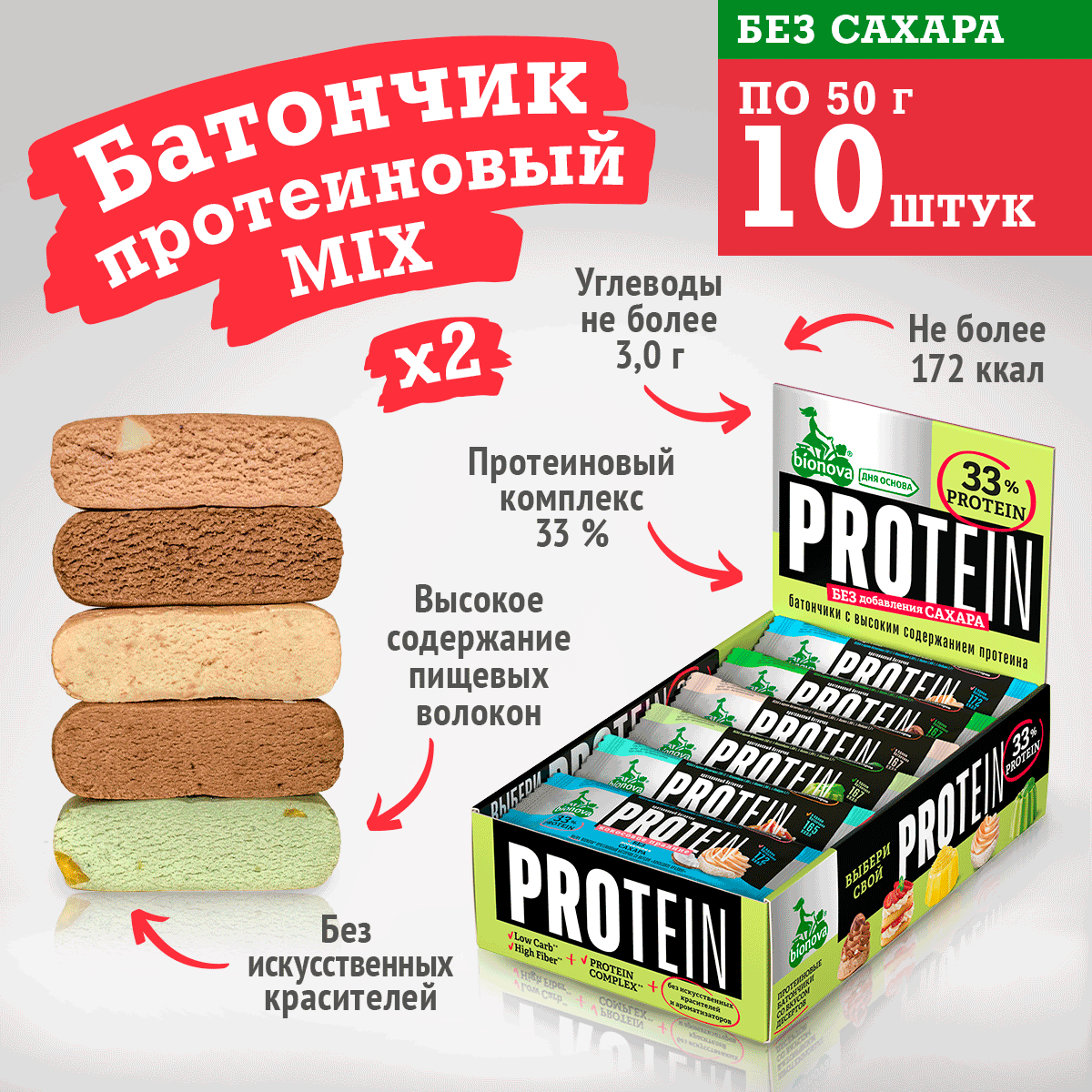 Купить Протеиновый батончик "Bionova" без сахара - Микс № 1