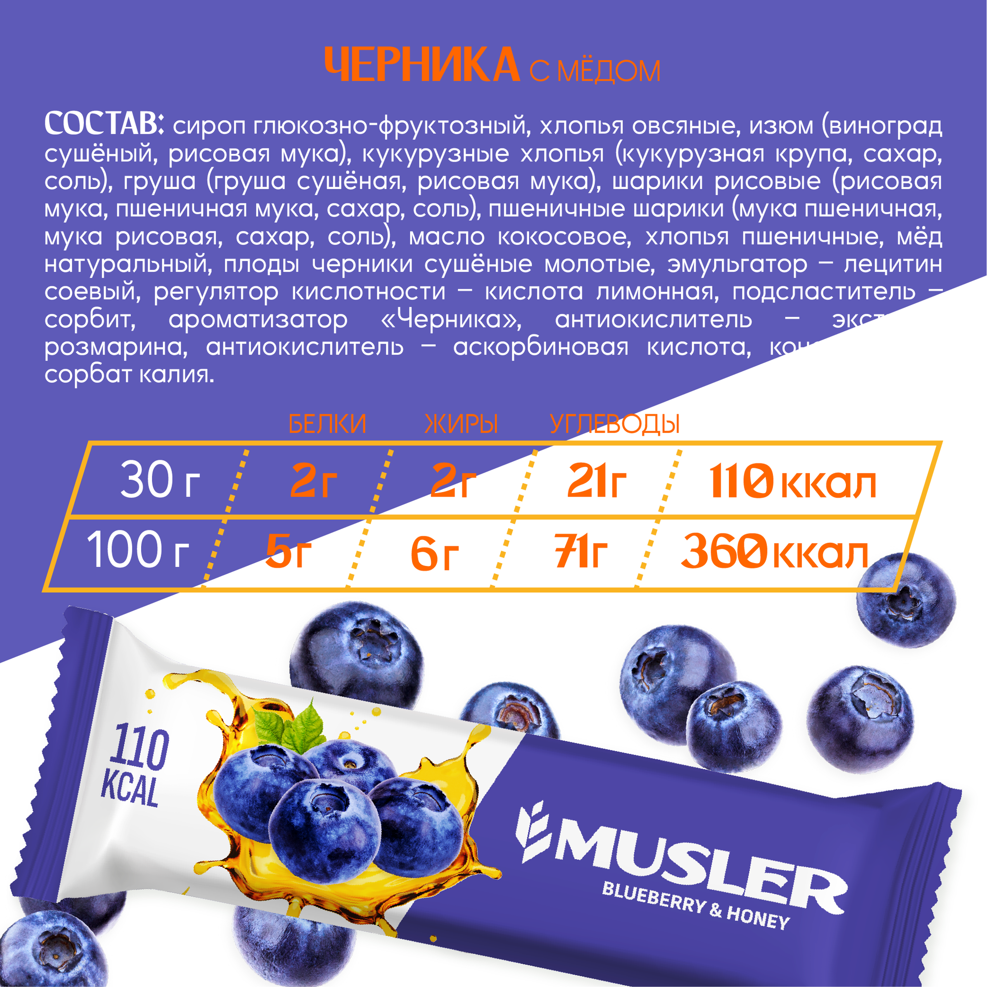 Злаковые батончики мюсли Musler Черника и мед 30г (25шт) интересное: