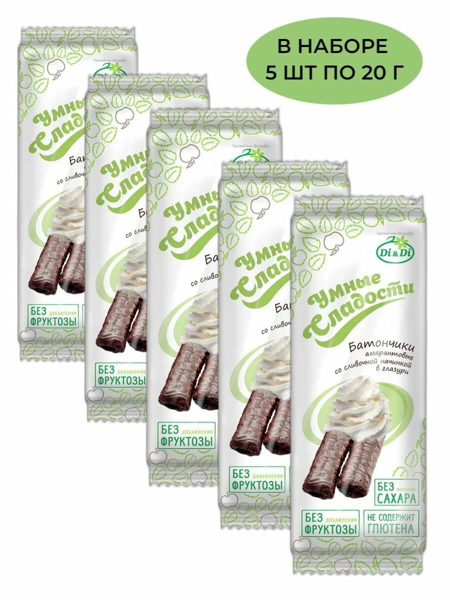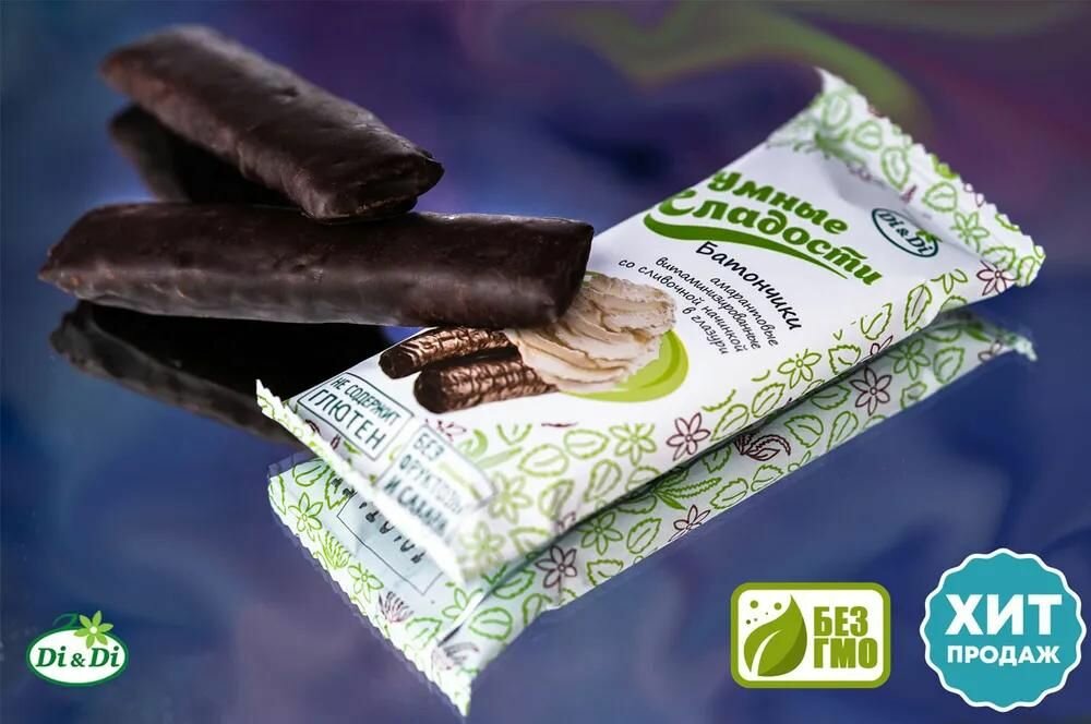 Батончики без сахара и глютена "Умные сладости" со сливочной начинкой в глазури, Di&Di, в наборе 5 шт по 20г интересное: