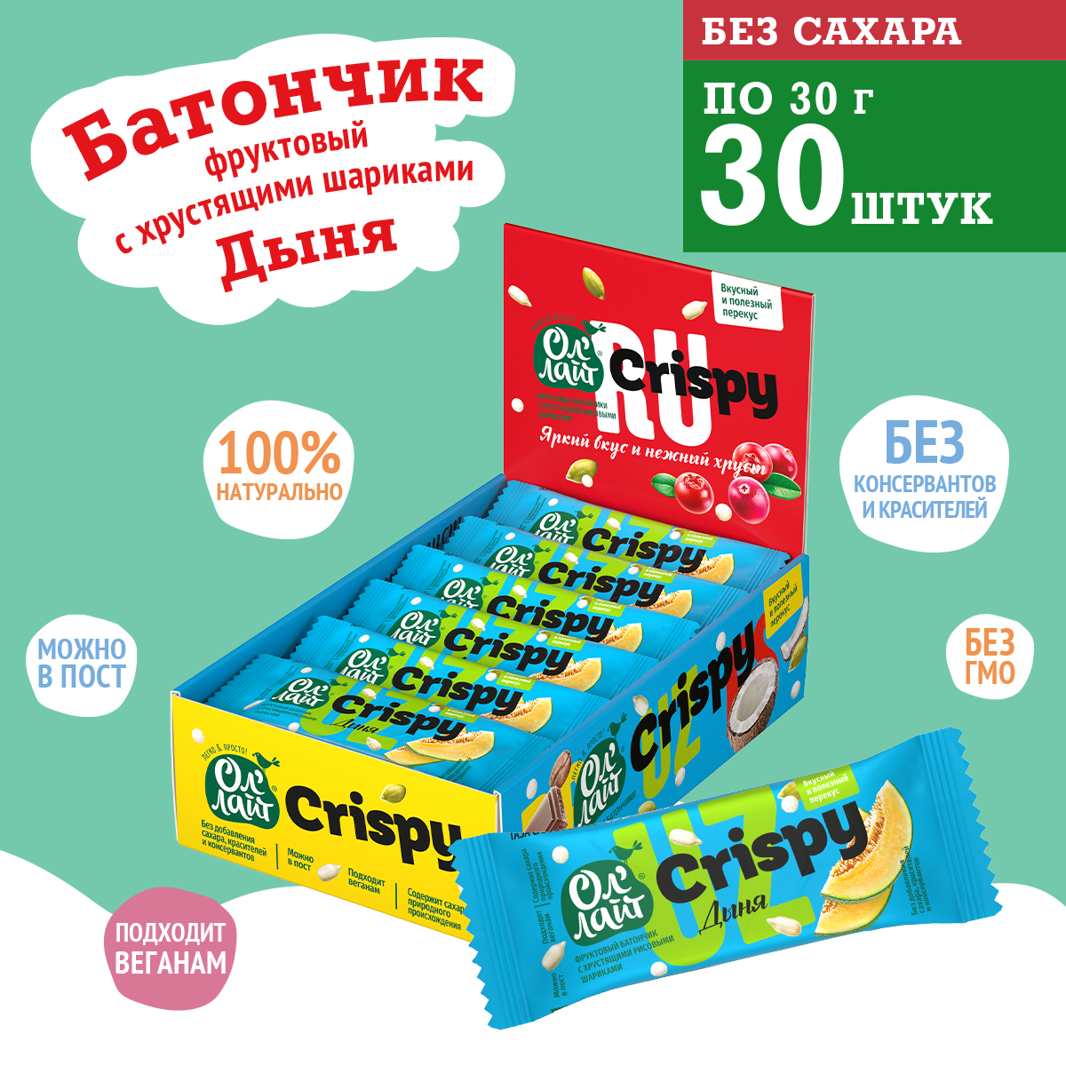 Фруктовый батончик с хрустящими шариками Ол'Лайт Crispy Дыня, без добавления сахара 30шт интересное: