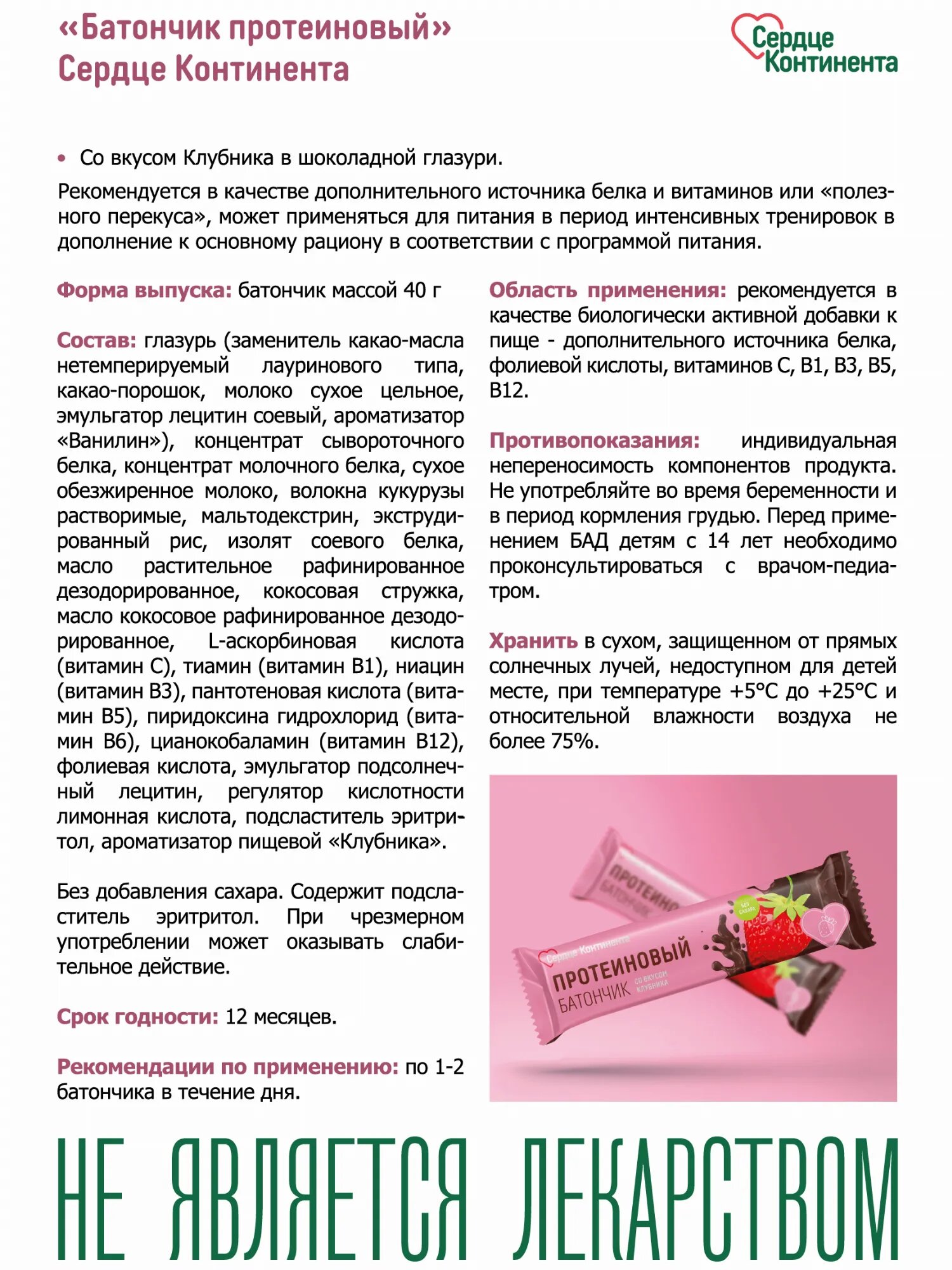 Батончик Протеиновый Сердце Континента Клубника в шок. глаз. 40г интересное: