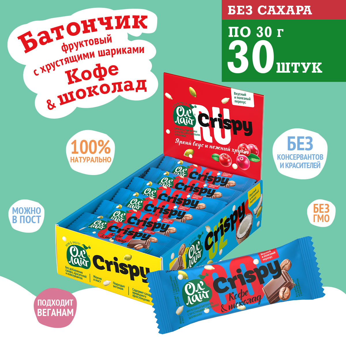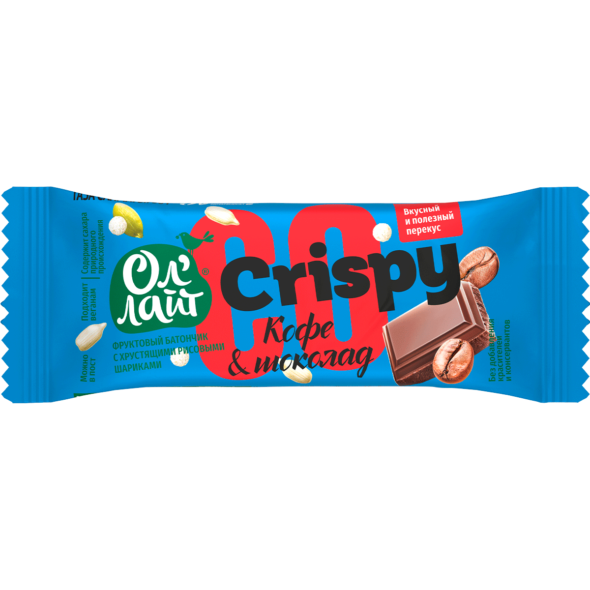Купить Фруктовый батончик с хрустящими рисовыми шариками с кофе и темным шоколадом, без добавления сахара
