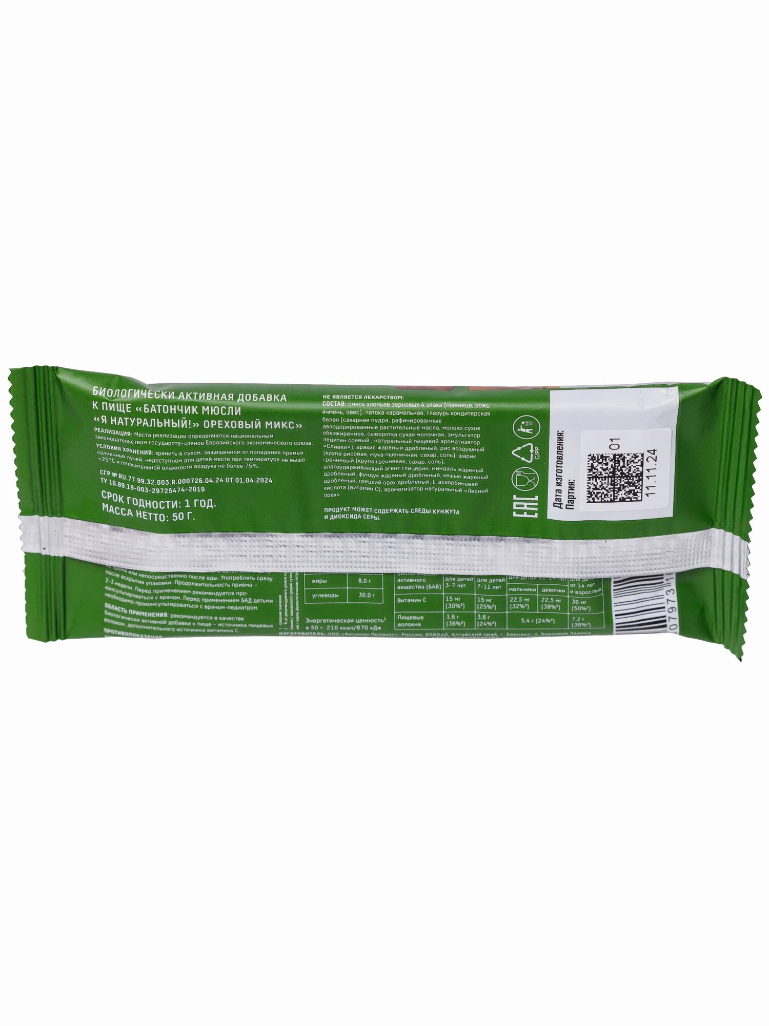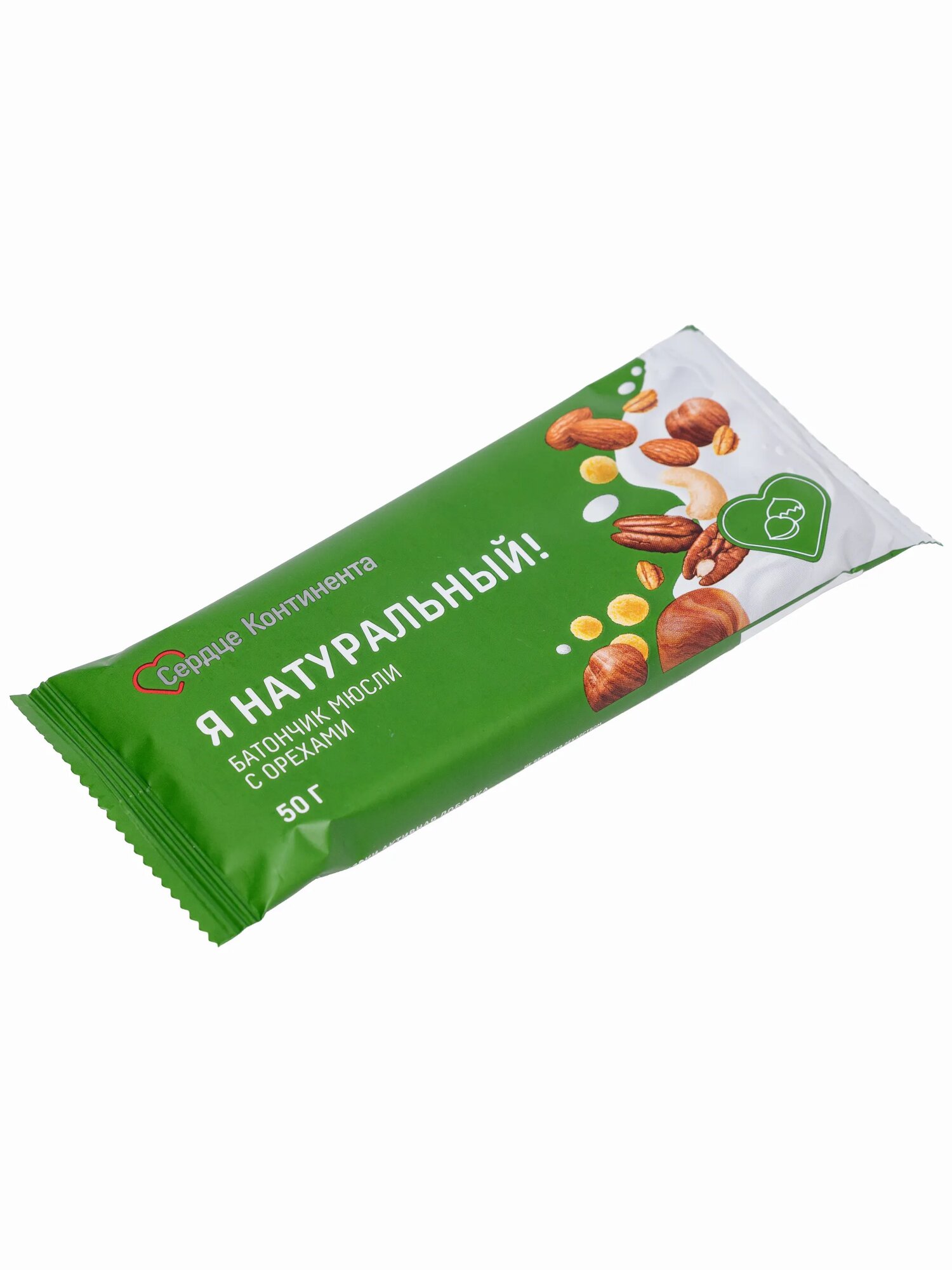 Батончик Мюсли Сердце Континента Я натуральный! Ореховый микс 50г интересное:
