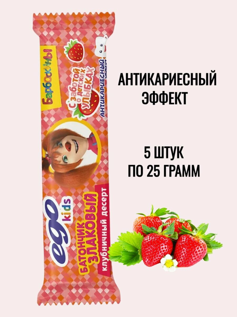 Батончик злаковый Ego kids клубничный десерт 25г, антикариесный эффект (5 шт в наборе) интересное: