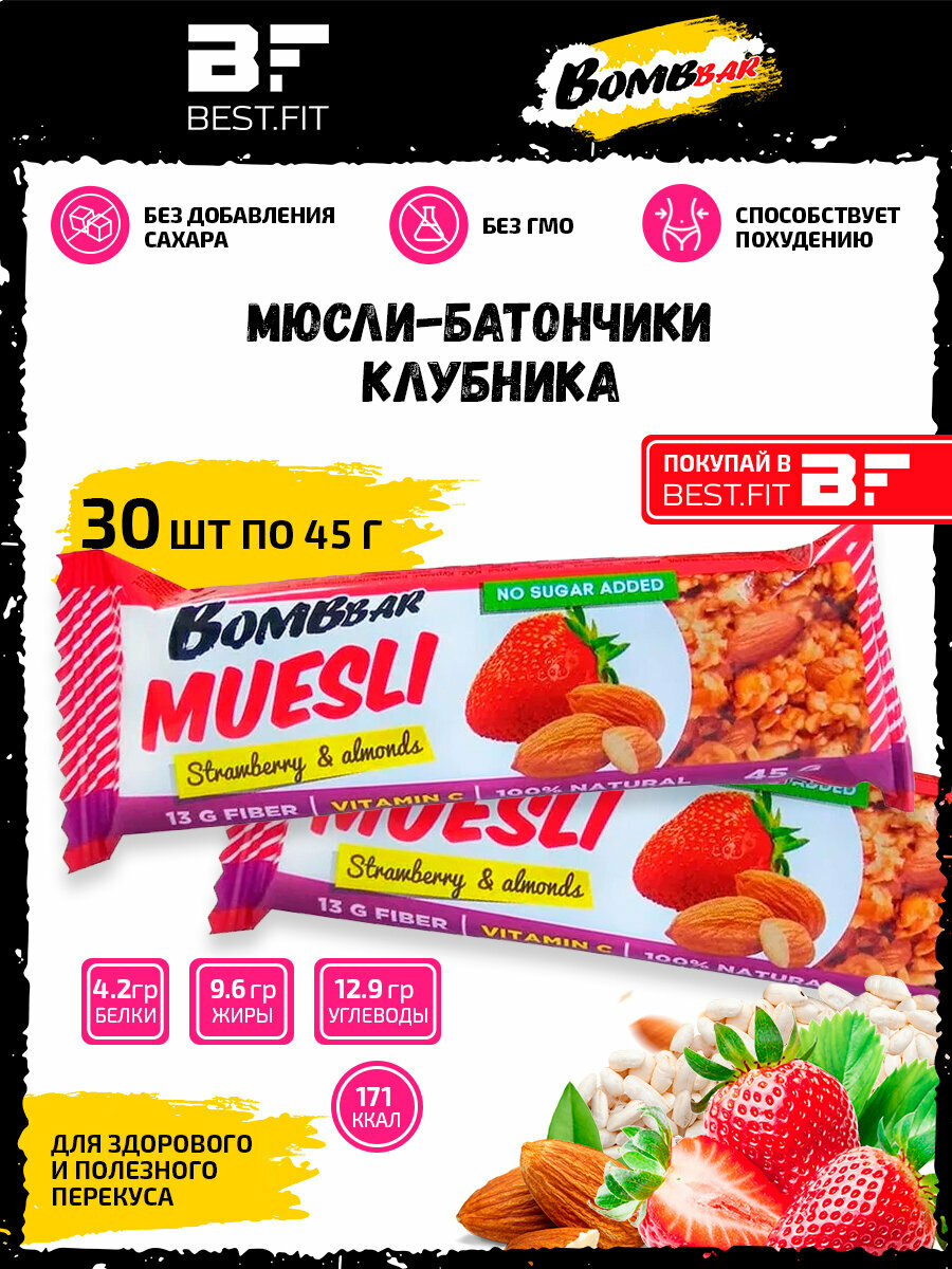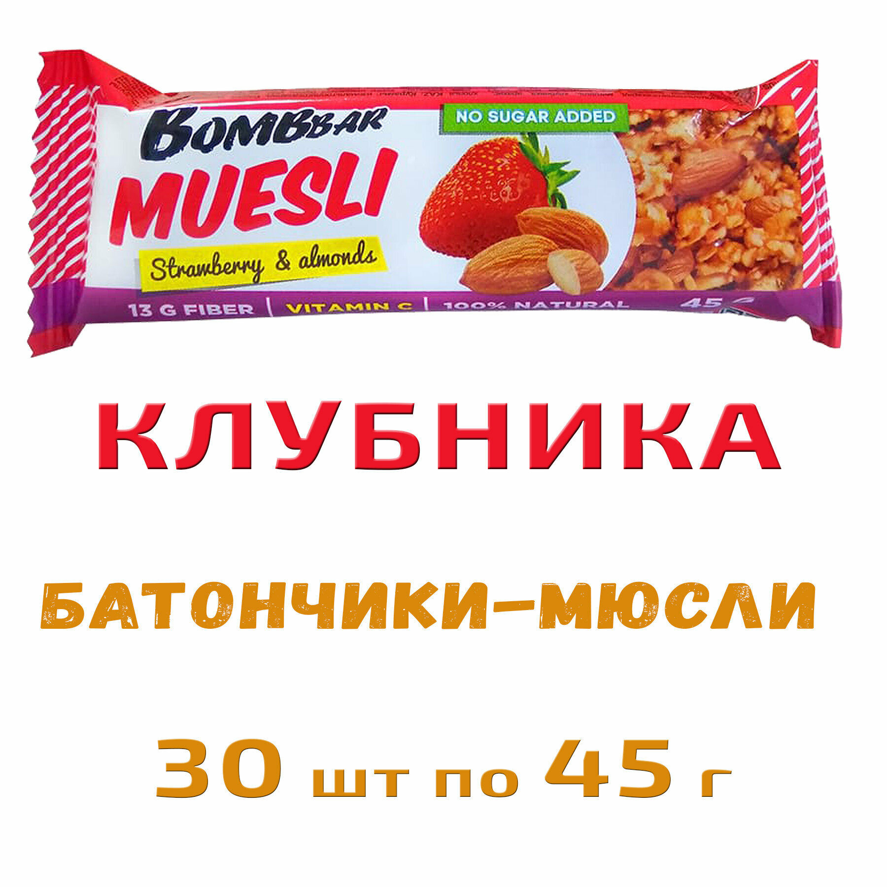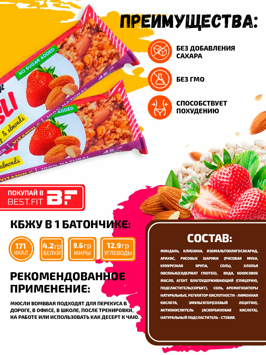 Мюсли батончики без сахара Клубника Миндаль, 30шт х 45г интересное: