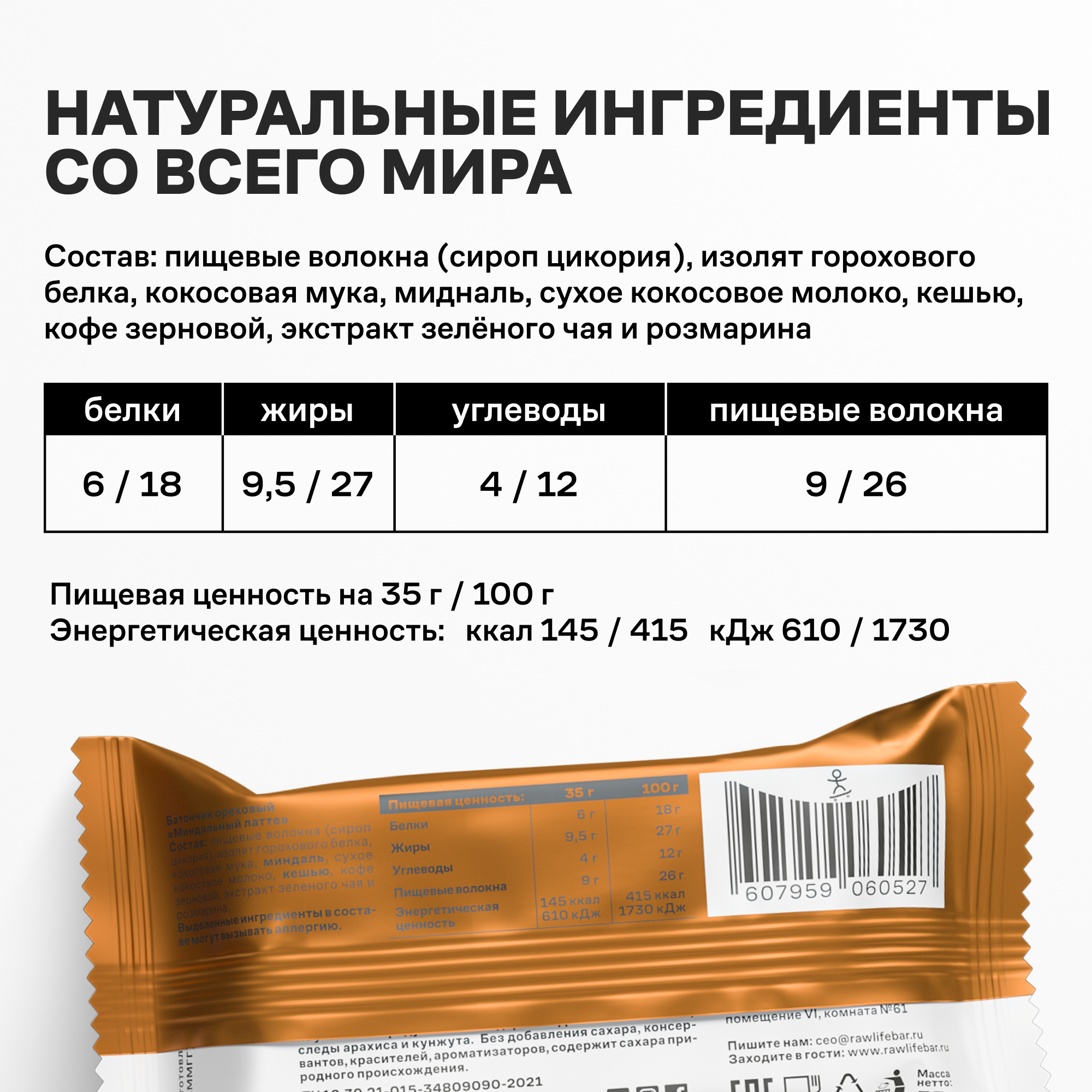 Батончики протеиновые низкоуглеводные LOW CARB BAR / Без сахара, глютена и лактозы / Миндальный латте, набор - 9 шт интересное: