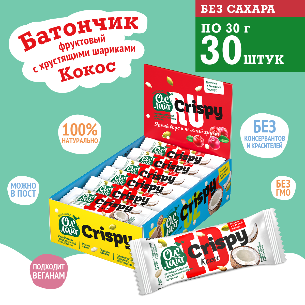 Фруктовый батончик с хрустящими рисовыми шариками и кокосом, без добавления сахара интересное: