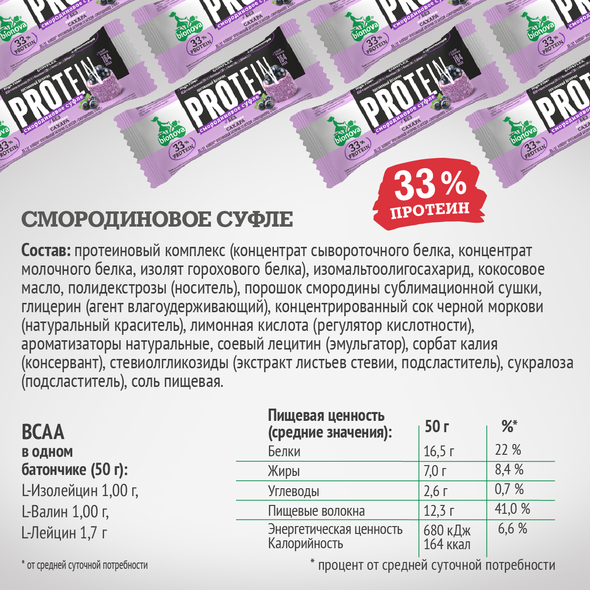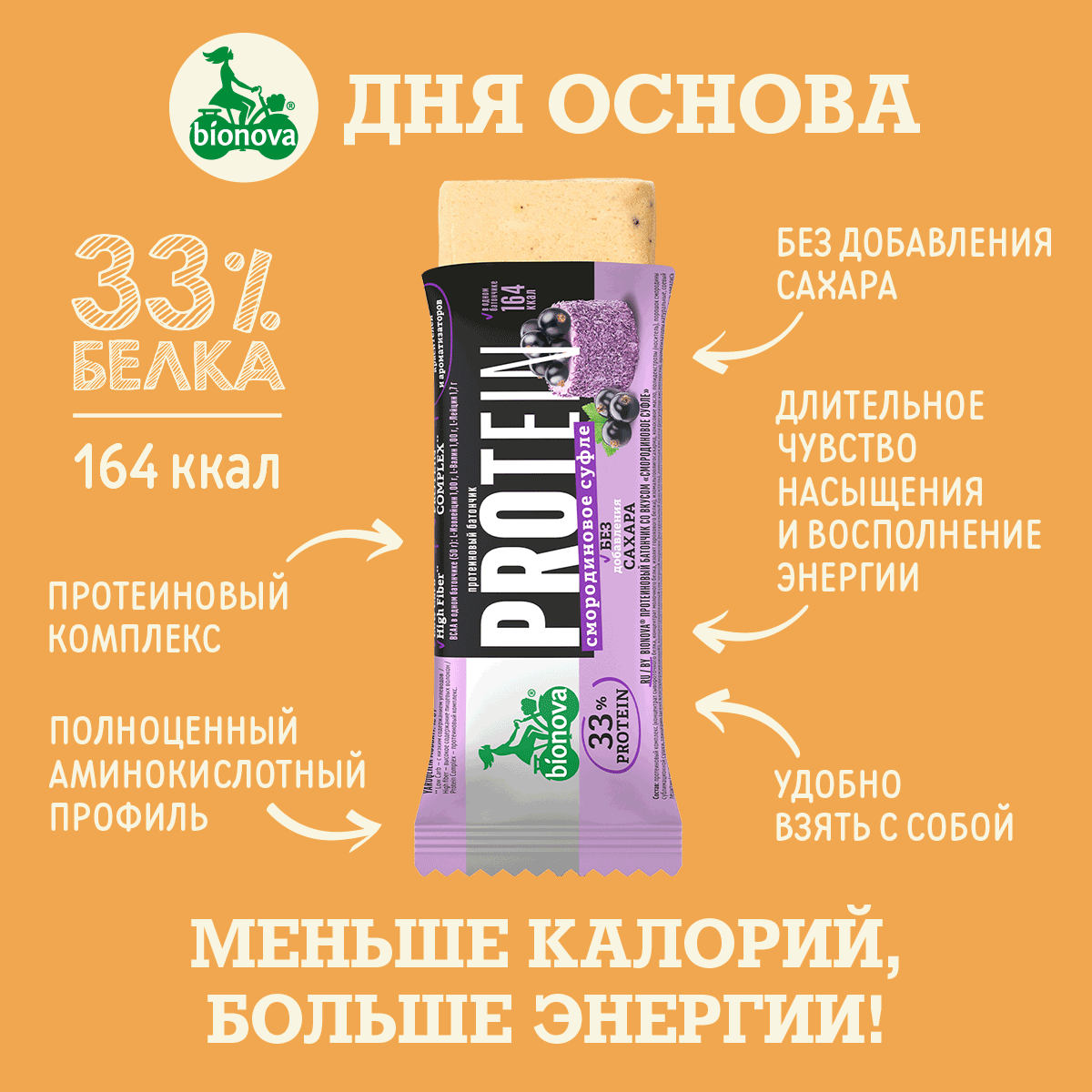 Протеиновый батончик Bionova Без сахара Смородиновое суфле интересное: